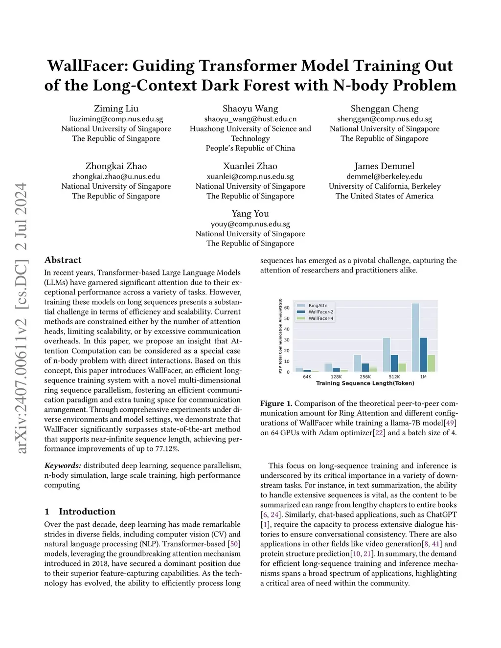In recent years, Transformer-based Large Language Models (LLMs) have garnered significant attention due to their exceptional performance across a variety of tasks. However, training these models on long sequences presents a substantial challenge in terms of efficiency and scalability. Current methods are constrained either by the number of attention heads, limiting scalability, or by excessive communication overheads. In this paper, we propose an insight that Attention Computation can be considered as a special case of n-body problem with direct interactions. Based on this concept, this paper introduces WallFacer, an efficient long-sequence training system with a novel multi-dimensional ring sequence parallelism, fostering an efficient communication paradigm and extra tuning space for communication arrangement. Through comprehensive experiments under diverse environments and model settings, we demonstrate that WallFacer significantly surpasses state-of-the-art method that supports near-infinite sequence length, achieving performance improvements of up to 77.12%.