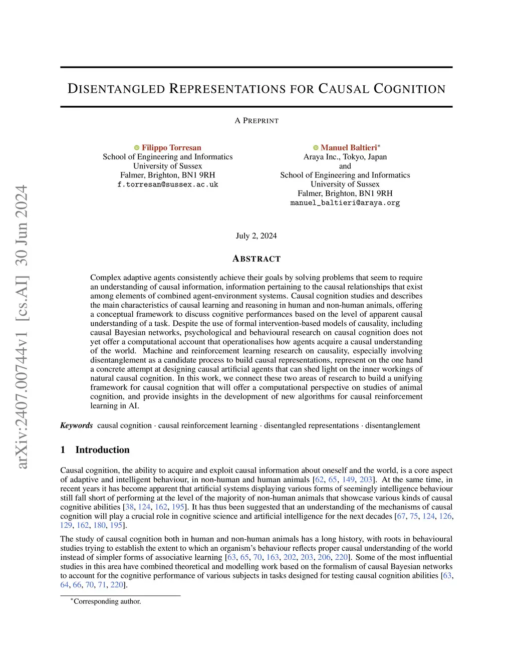 Disentangled Representations for Causal Cognition