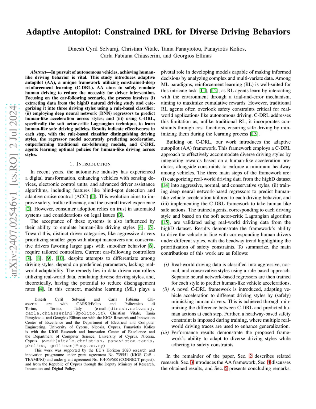 Adaptive Autopilot: Constrained DRL for Diverse Driving Behaviors