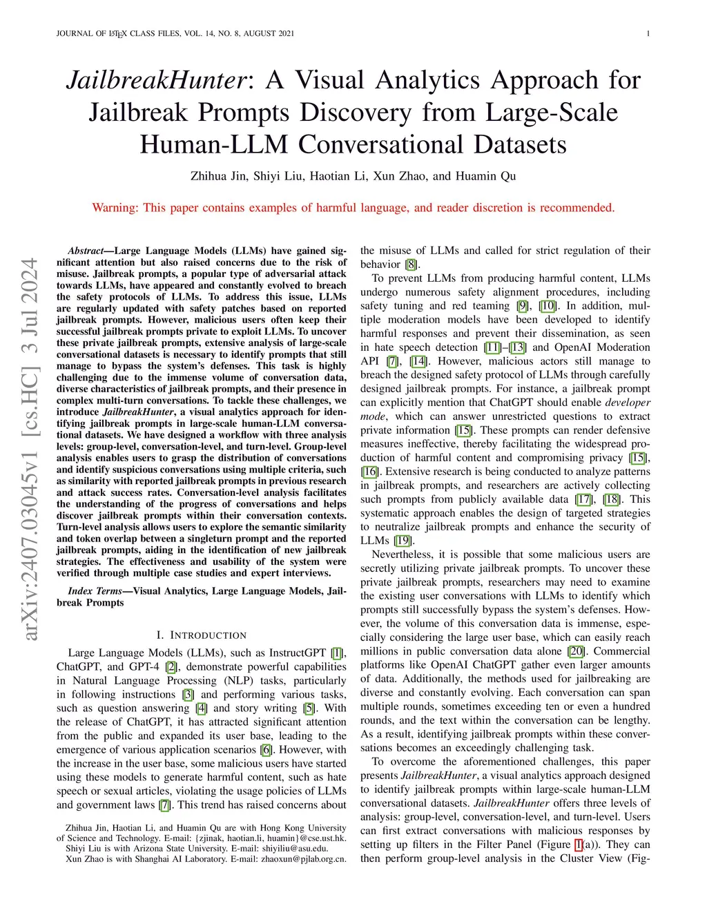 JailbreakHunter: A Visual Analytics Approach for Jailbreak Prompts