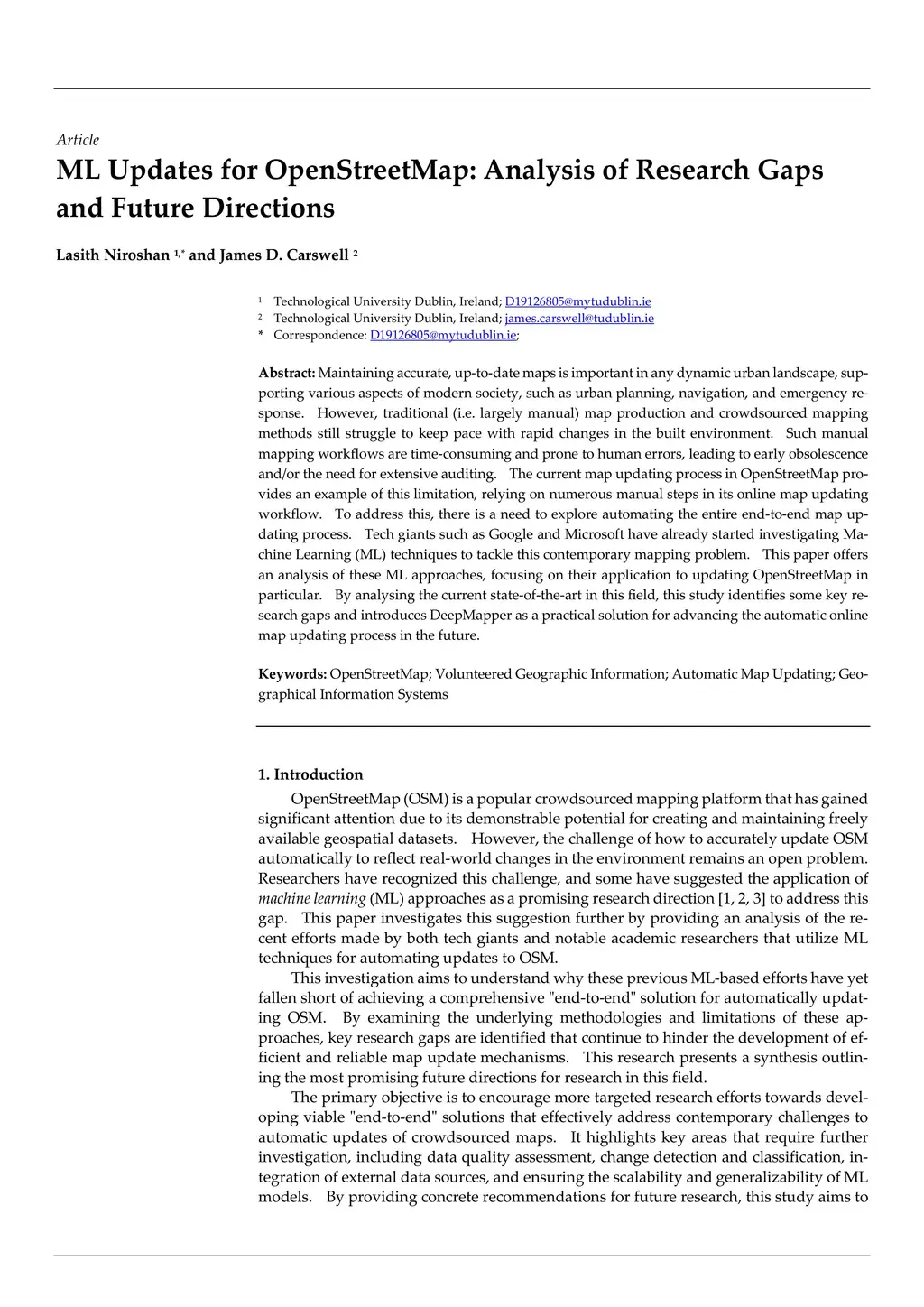 Maintaining accurate, up-to-date maps is important in any dynamic urban landscape, supporting various aspects of modern society, such as urban planning, navigation, and emergency response. However, traditional (i.e. largely manual) map production and crowdsourced mapping methods still struggle to keep pace with rapid changes in the built environment. Such manual mapping workflows are time-consuming and prone to human errors, leading to early obsolescence and/or the need for extensive auditing. The current map updating process in OpenStreetMap provides an example of this limitation, relying on numerous manual steps in its online map updating workflow. To address this, there is a need to explore automating the entire end-to-end map up-dating process. Tech giants such as Google and Microsoft have already started investigating Machine Learning (ML) techniques to tackle this contemporary mapping problem. This paper offers an analysis of these ML approaches, focusing on their application to updating Open-StreetMap in particular. By analysing the current state-of-the-art in this field, this study identi-fies some key research gaps and introduces DeepMapper as a practical solution for advancing the automatic online map updating process in the future.