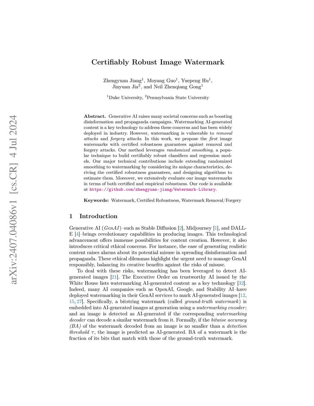 Certifiably Robust Image Watermark