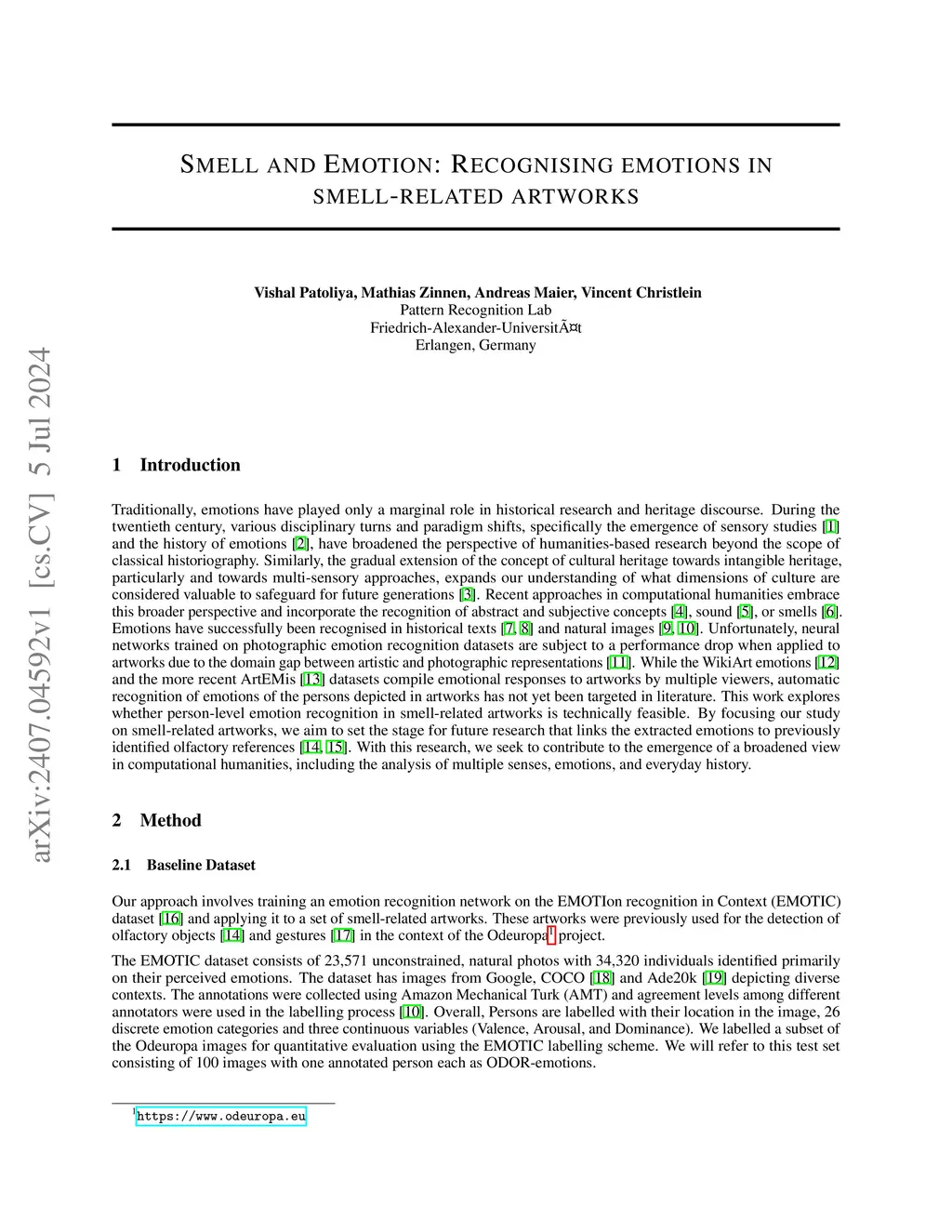 Smell and Emotion: Recognising emotions in smell-related artworks
