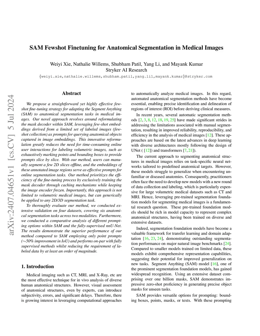 SAM Fewshot Finetuning for Anatomical Segmentation in Medical Images