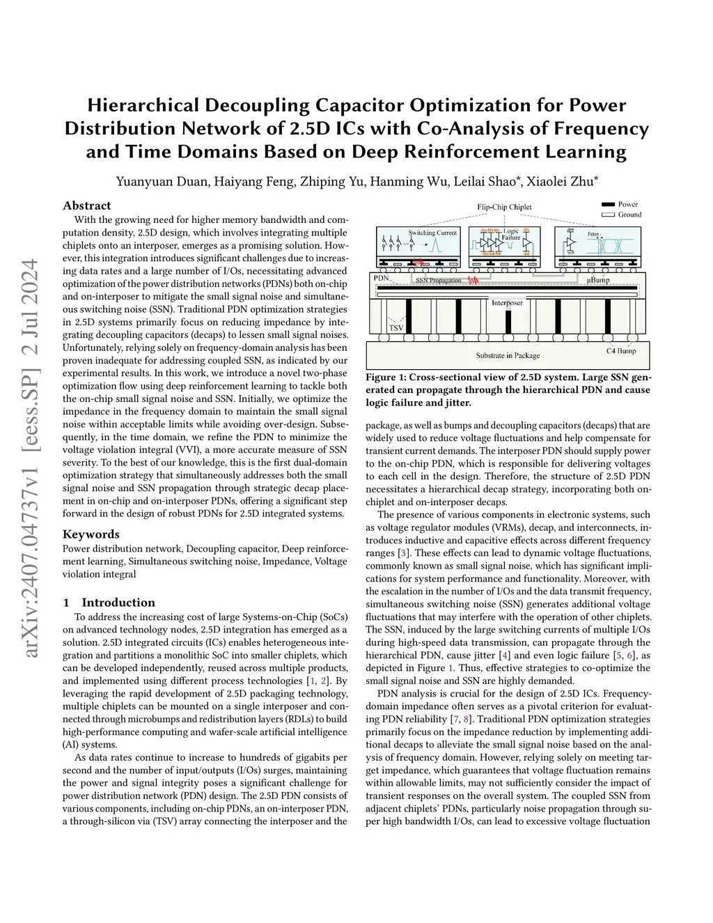 Hierarchical Decoupling Capacitor Optimization for Power Distribution Network of 2.5D ICs with Co-Analysis of Frequency and Time Domains Based on Deep Reinforcement Learning