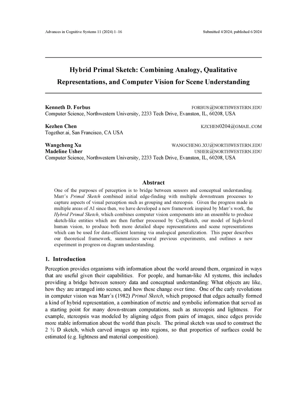 One of the purposes of perception is to bridge between sensors and conceptual understanding. Marr's Primal Sketch combined initial edge-finding with multiple downstream processes to capture aspects of visual perception such as grouping and stereopsis. Given the progress made in multiple areas of AI since then, we have developed a new framework inspired by Marr's work, the Hybrid Primal Sketch, which combines computer vision components into an ensemble to produce sketch-like entities which are then further processed by CogSketch, our model of high-level human vision, to produce both more detailed shape representations and scene representations which can be used for data-efficient learning via analogical generalization. This paper describes our theoretical framework, summarizes several previous experiments, and outlines a new experiment in progress on diagram understanding.