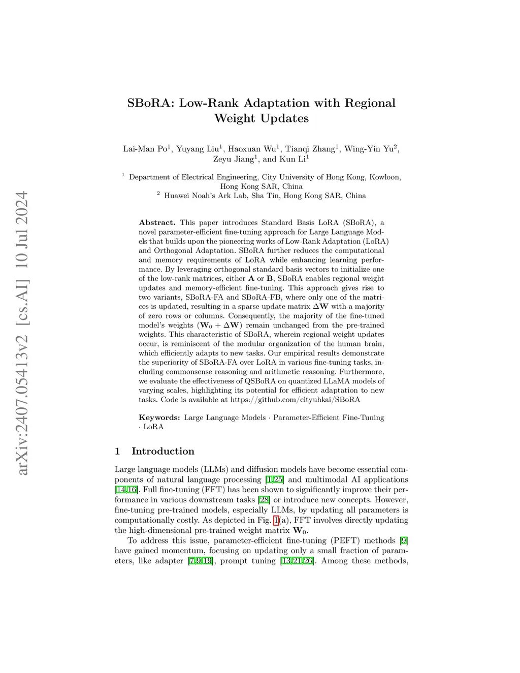 SBoRA: Low-Rank Adaptation with Regional Weight Updates