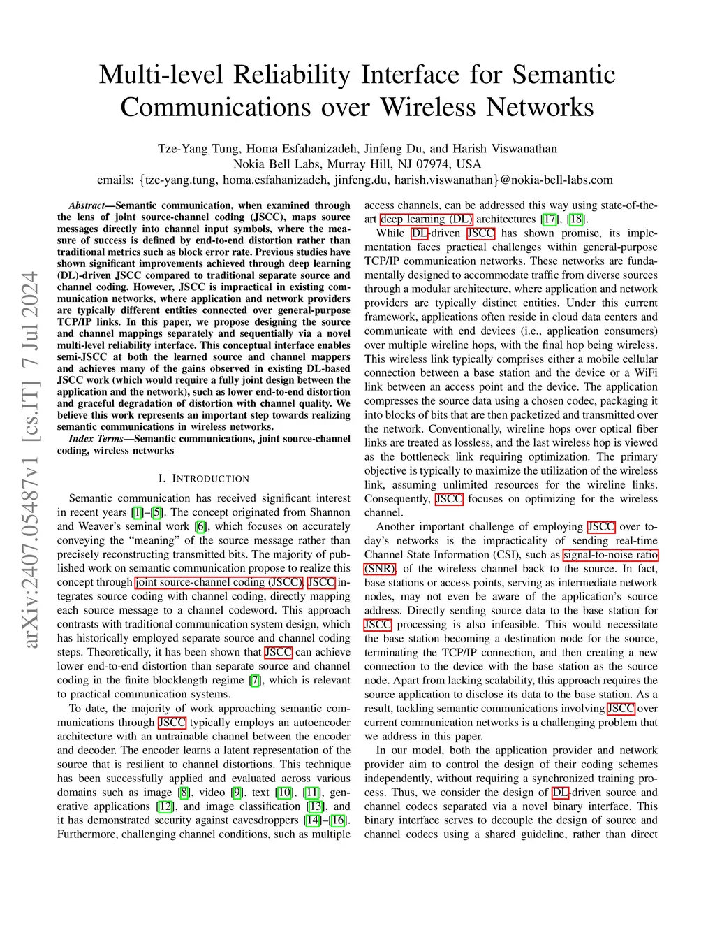 Semantic communication, when examined through the lens of joint source-channel coding (JSCC), maps source messages directly into channel input symbols, where the measure of success is defined by end-to-end distortion rather than traditional metrics such as block error rate. Previous studies have shown significant improvements achieved through deep learning (DL)-driven JSCC compared to traditional separate source and channel coding. However, JSCC is impractical in existing communication networks, where application and network providers are typically different entities connected over general-purpose TCP/IP links. In this paper, we propose designing the source and channel mappings separately and sequentially via a novel multi-level reliability interface. This conceptual interface enables semi-JSCC at both the learned source and channel mappers and achieves many of the gains observed in existing DL-based JSCC work (which would require a fully joint design between the application and the network), such as lower end-to-end distortion and graceful degradation of distortion with channel quality. We believe this work represents an important step towards realizing semantic communications in wireless networks.