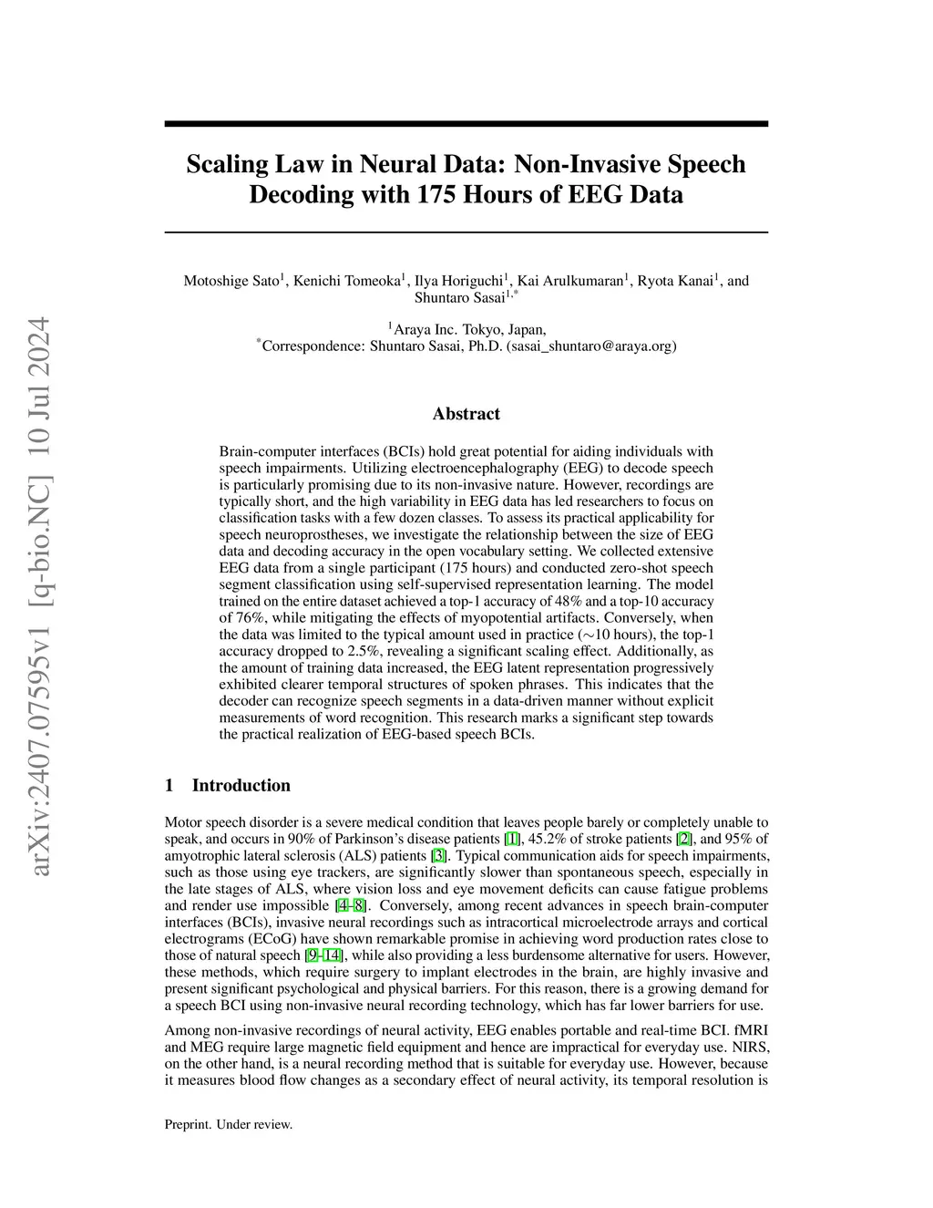 Scaling Law in Neural Data: Non-Invasive Speech Decoding with 175 Hours