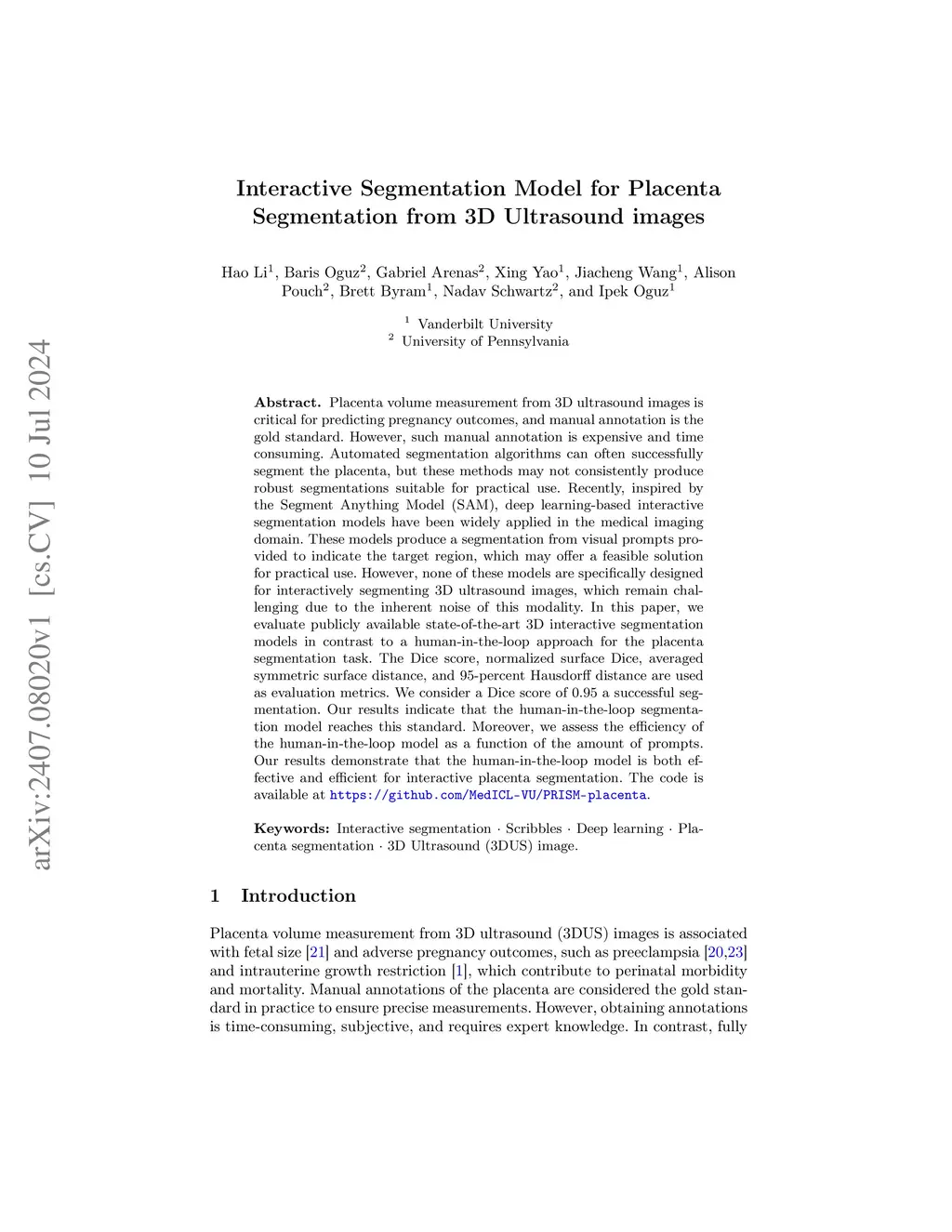 Interactive Segmentation Model for Placenta Segmentation from 3D