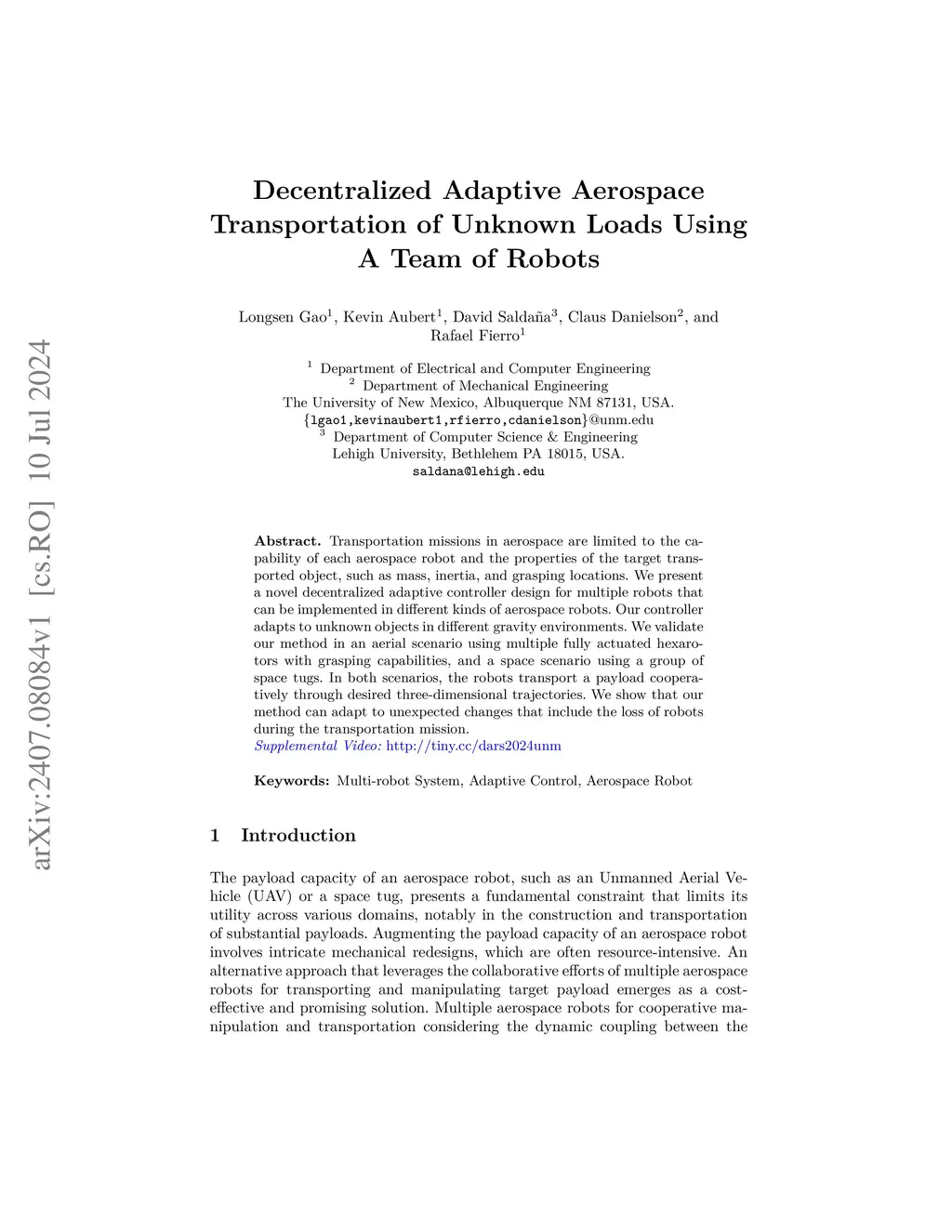 Decentralized Adaptive Aerospace Transportation of Unknown Loads Using A