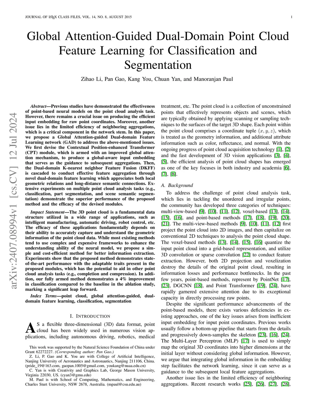 Global Attention-Guided Dual-Domain Point Cloud Feature Learning for
