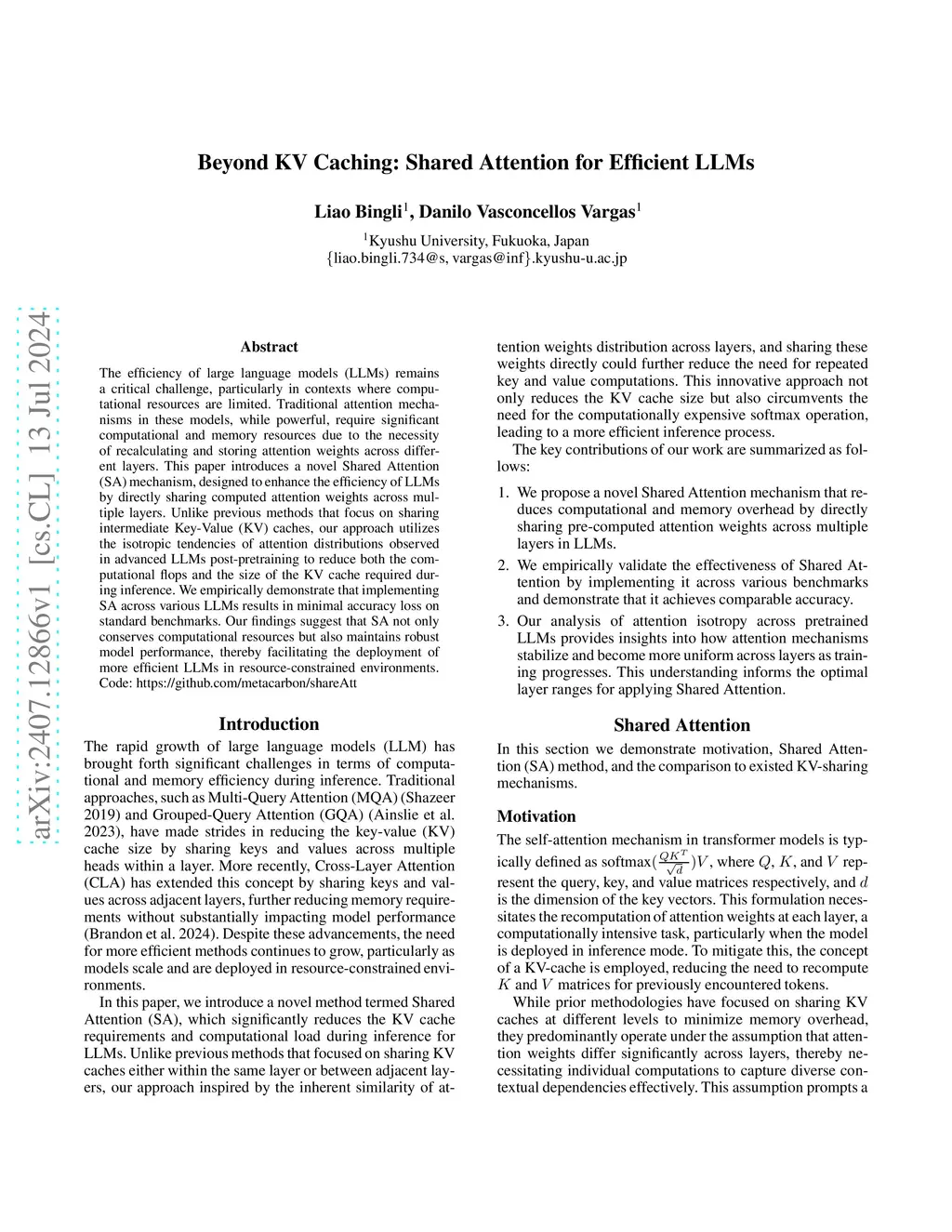 Beyond KV Caching: Shared Attention for Efficient LLMs