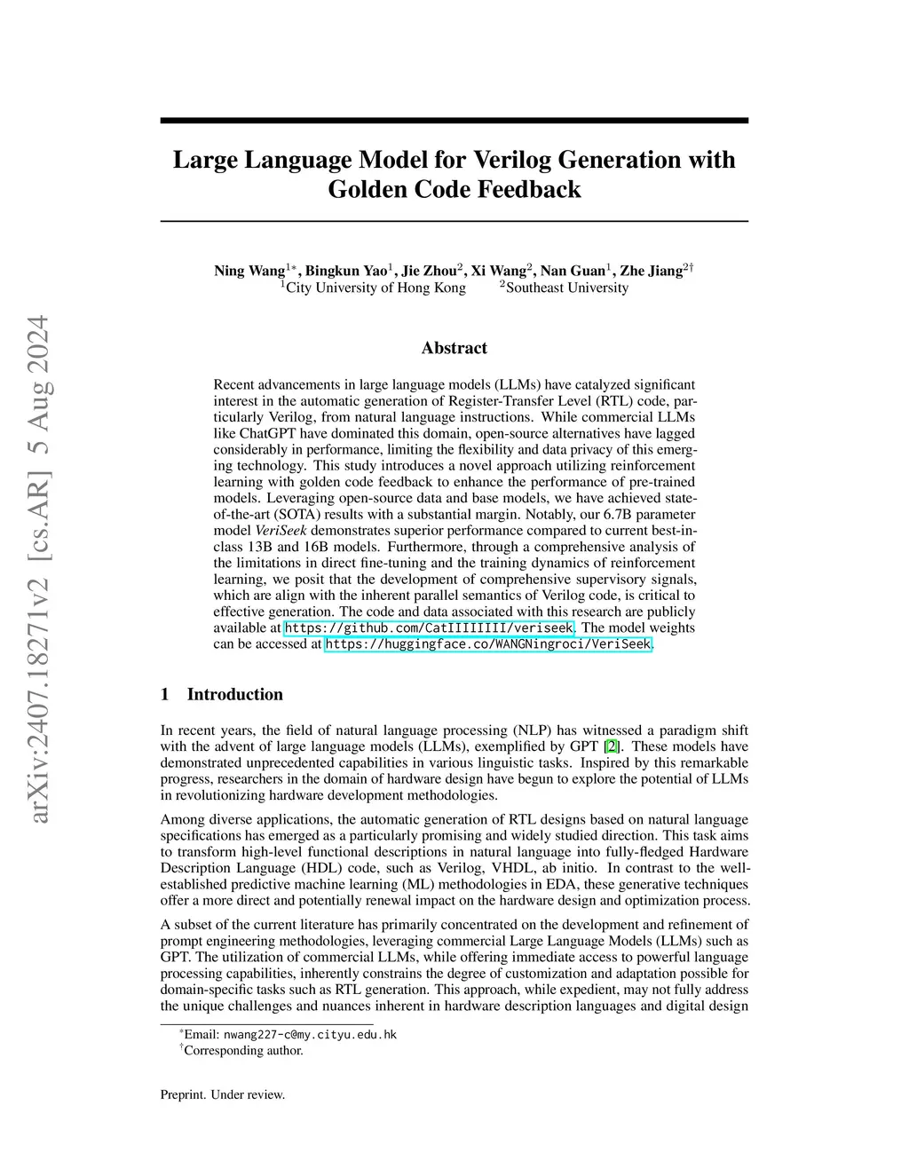 Large Language Model for Verilog Generation with Code-Structure-Guided Reinforcement Learning