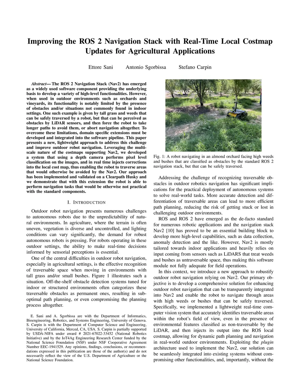 The ROS 2 Navigation Stack (Nav2) has emerged as a widely used software component providing the underlying basis to develop a variety of high-level functionalities. However, when used in outdoor environments such as orchards and vineyards, its functionality is notably limited by the presence of obstacles and/or situations not commonly found in indoor settings. One such example is given by tall grass and weeds that can be safely traversed by a robot, but that can be perceived as obstacles by LiDAR sensors, and then force the robot to take longer paths to avoid them, or abort navigation altogether. To overcome these limitations, domain specific extensions must be developed and integrated into the software pipeline. This paper presents a new, lightweight approach to address this challenge and improve outdoor robot navigation. Leveraging the multi-scale nature of the costmaps supporting Nav2, we developed a system that using a depth camera performs pixel level classification on the images, and in real time injects corrections into the local cost map, thus enabling the robot to traverse areas that would otherwise be avoided by the Nav2. Our approach has been implemented and validated on a Clearpath Husky and we demonstrate that with this extension the robot is able to perform navigation tasks that would be otherwise not practical with the standard components.