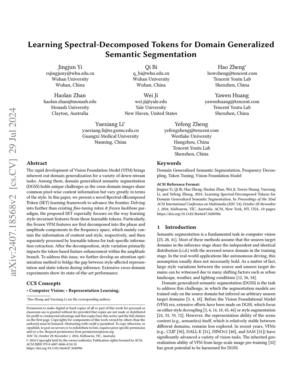 Learning Spectral-Decomposed Tokens for Domain Generalized Semantic