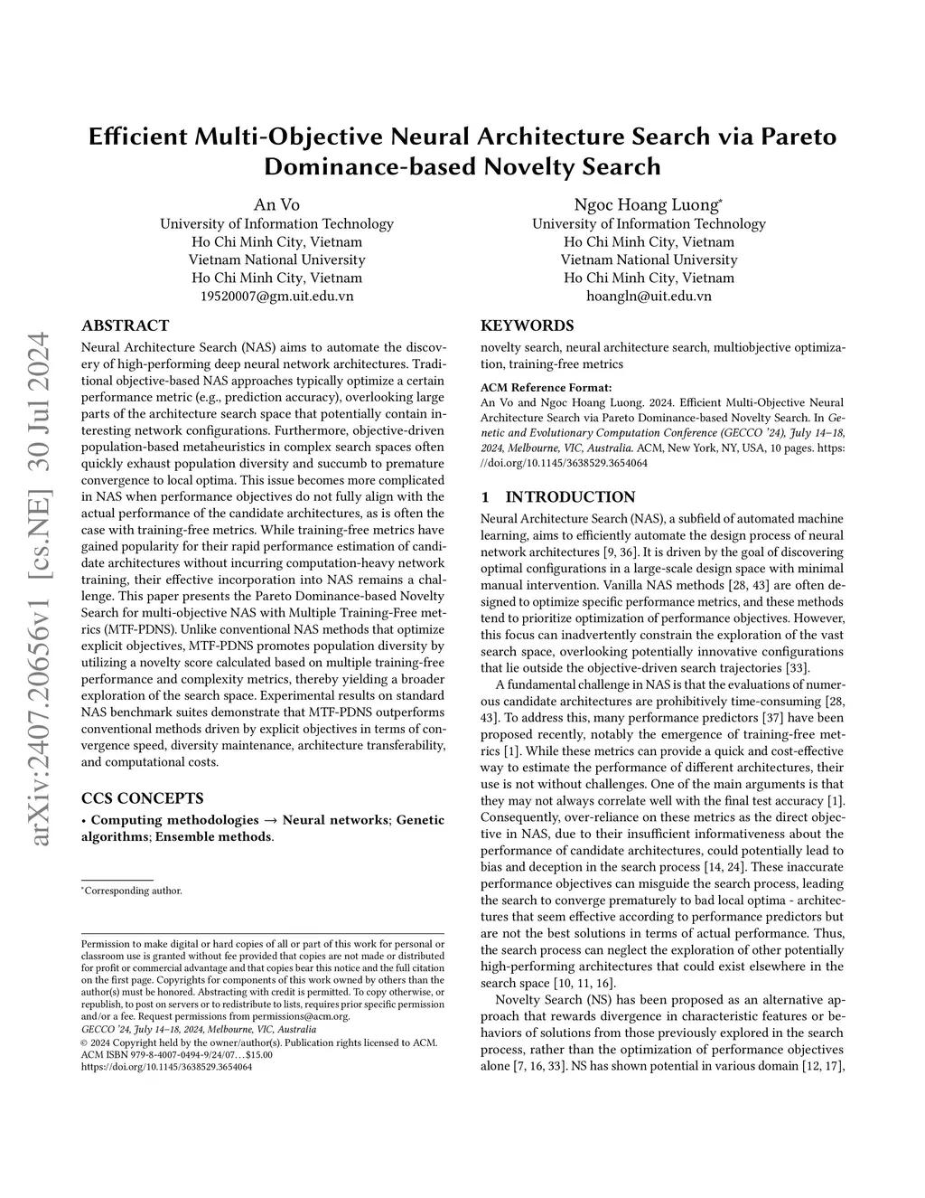 Efficient Multi-Objective Neural Architecture Search via Pareto