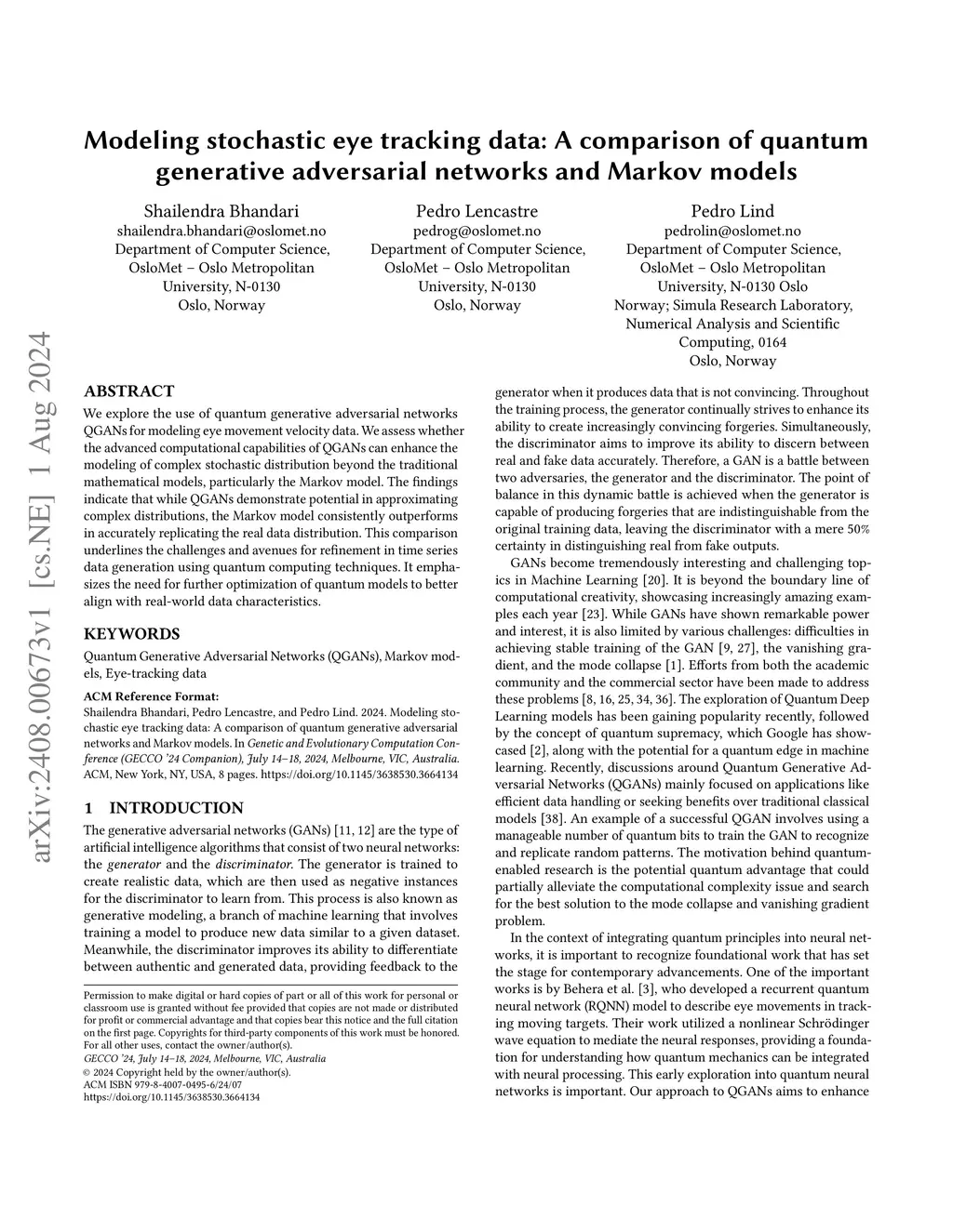 generative adversarial networks and Markov models