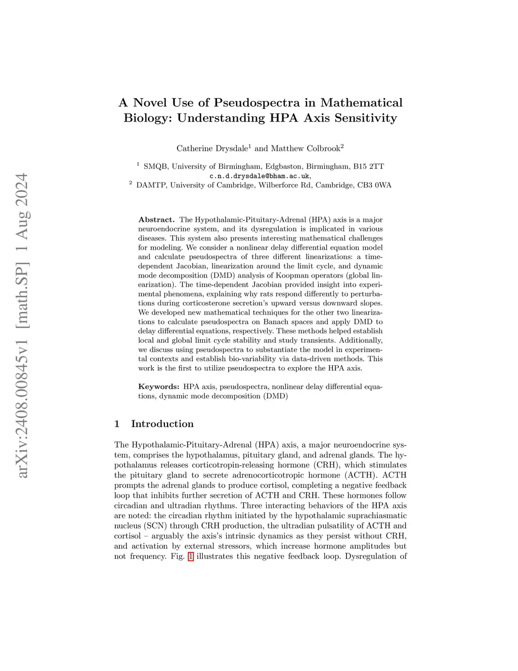 A Novel Use of Pseudospectra in Mathematical Biology: Understanding HPA