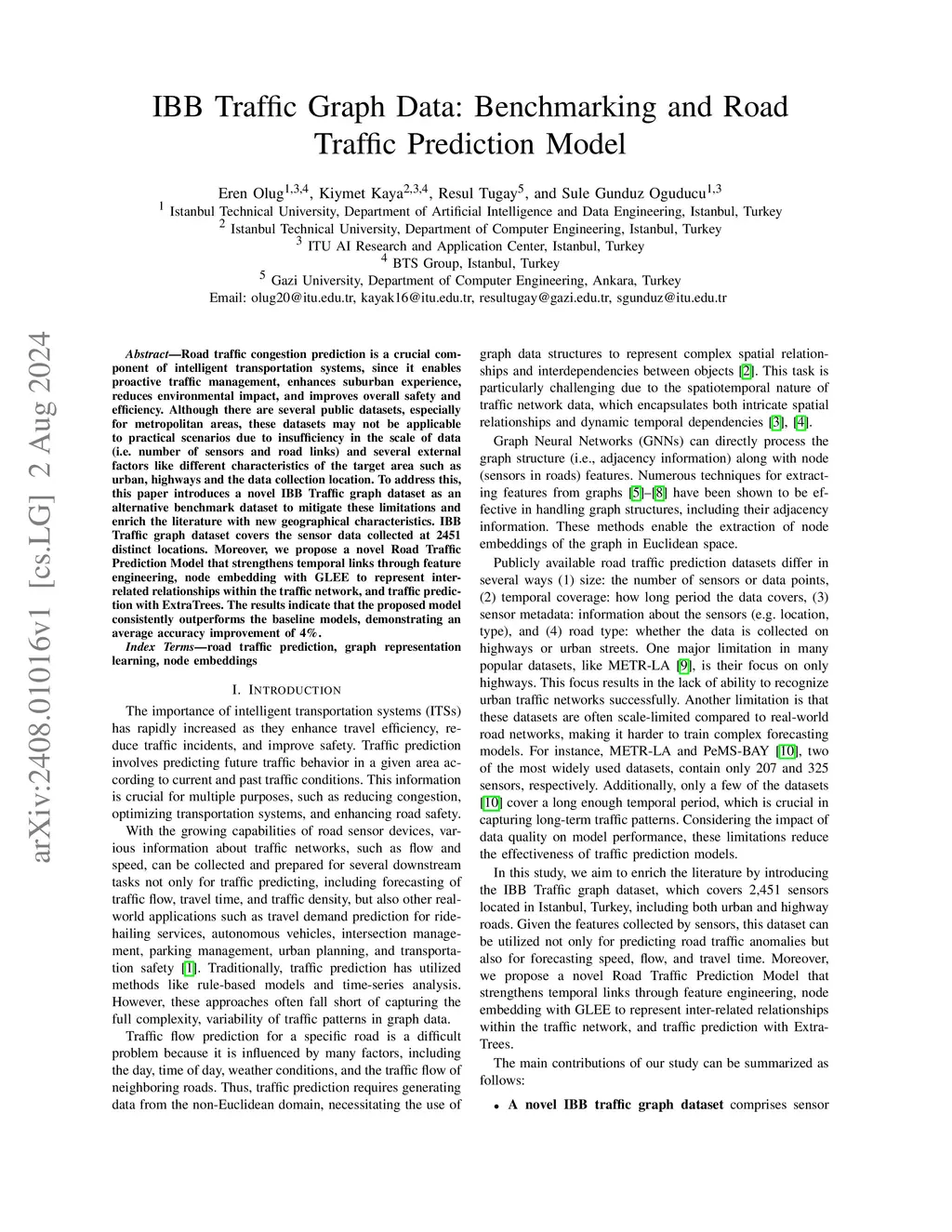 IBB Traffic Graph Data: Benchmarking and Road Traffic Prediction Model