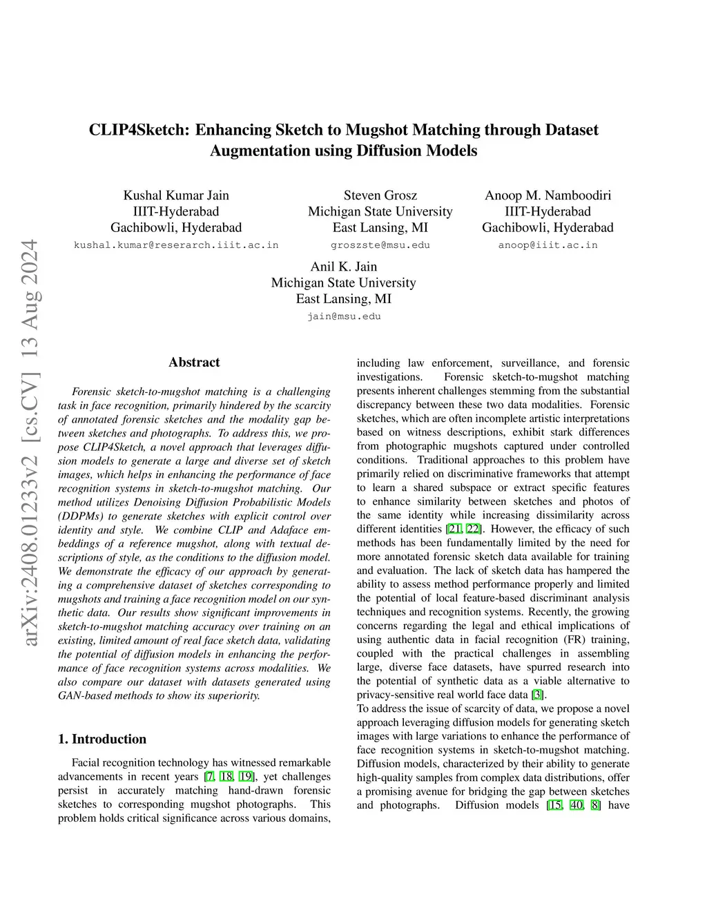 CLIP4Sketch: Enhancing Sketch to Mugshot Matching through Dataset