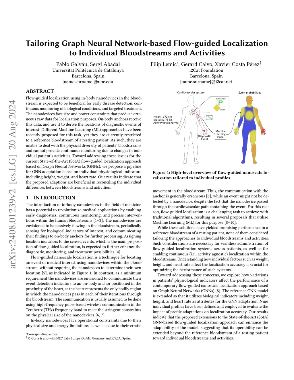 Flow-guided localization using in-body nanodevices in the bloodstream is expected to be beneficial for early disease detection, continuous monitoring of biological conditions, and targeted treatment. The nanodevices face size and power constraints that produce erroneous raw data for localization purposes. On-body anchors receive this data, and use it to derive the locations of diagnostic events of interest. Different Machine Learning (ML) approaches have been recently proposed for this task, yet they are currently restricted to a reference bloodstream of a resting patient. As such, they are unable to deal with the physical diversity of patients' bloodstreams and cannot provide continuous monitoring due to changes in individual patient's activities. Toward addressing these issues for the current State-of-the-Art (SotA) flow-guided localization approach based on Graph Neural Networks (GNNs), we propose a pipeline for GNN adaptation based on individual physiological indicators including height, weight, and heart rate. Our results indicate that the proposed adaptions are beneficial in reconciling the individual differences between bloodstreams and activities.