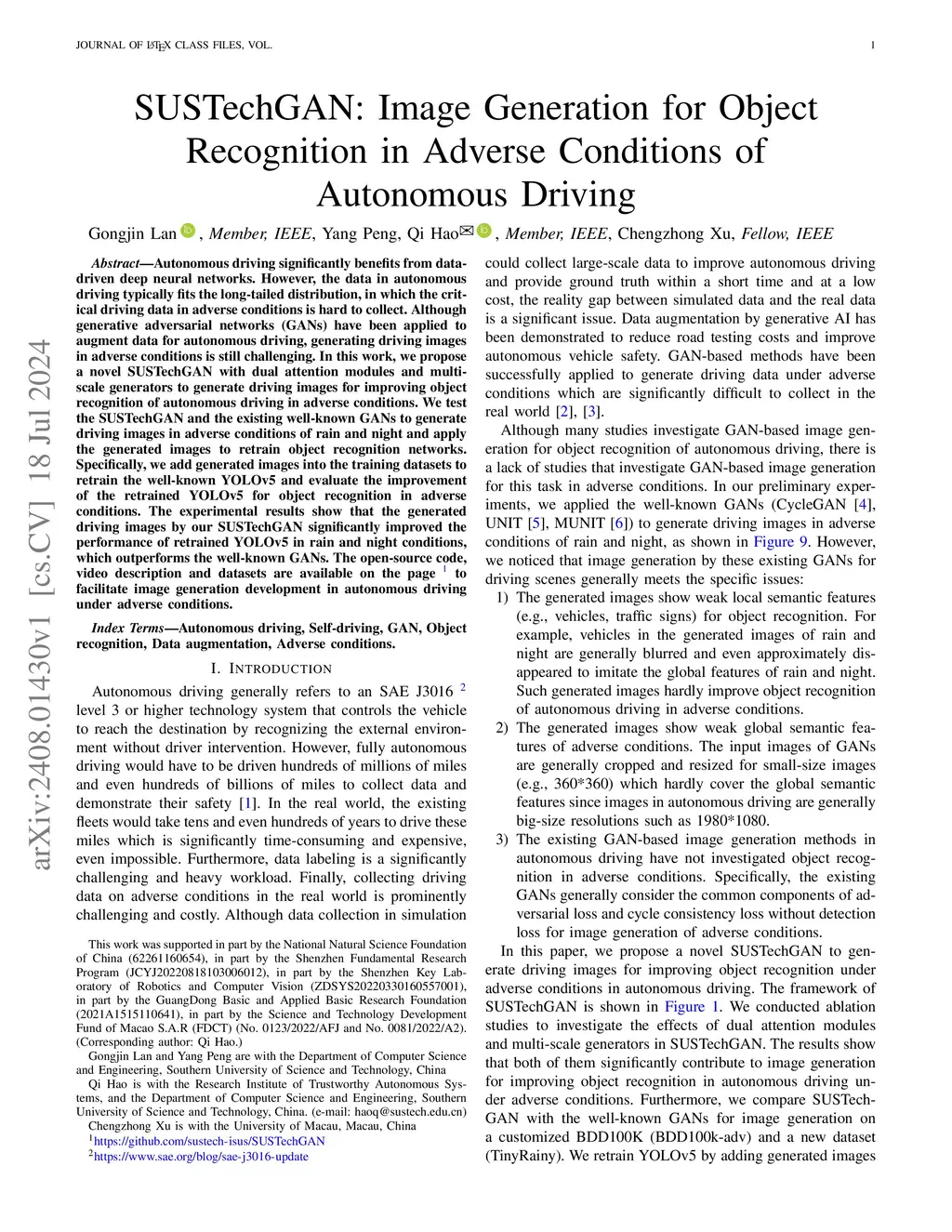 SUSTechGAN: Image Generation for Object Recognition in Adverse