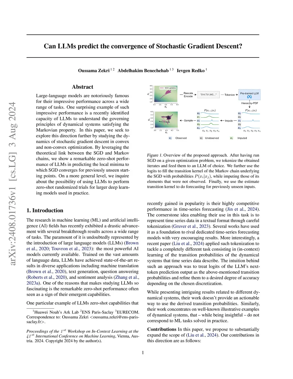 Large-language models are notoriously famous for their impressive performance across a wide range of tasks. One surprising example of such impressive performance is a recently identified capacity of LLMs to understand the governing principles of dynamical systems satisfying the Markovian property. In this paper, we seek to explore this direction further by studying the dynamics of stochastic gradient descent in convex and non-convex optimization. By leveraging the theoretical link between the SGD and Markov chains, we show a remarkable zero-shot performance of LLMs in predicting the local minima to which SGD converges for previously unseen starting points. On a more general level, we inquire about the possibility of using LLMs to perform zero-shot randomized trials for larger deep learning models used in practice.
