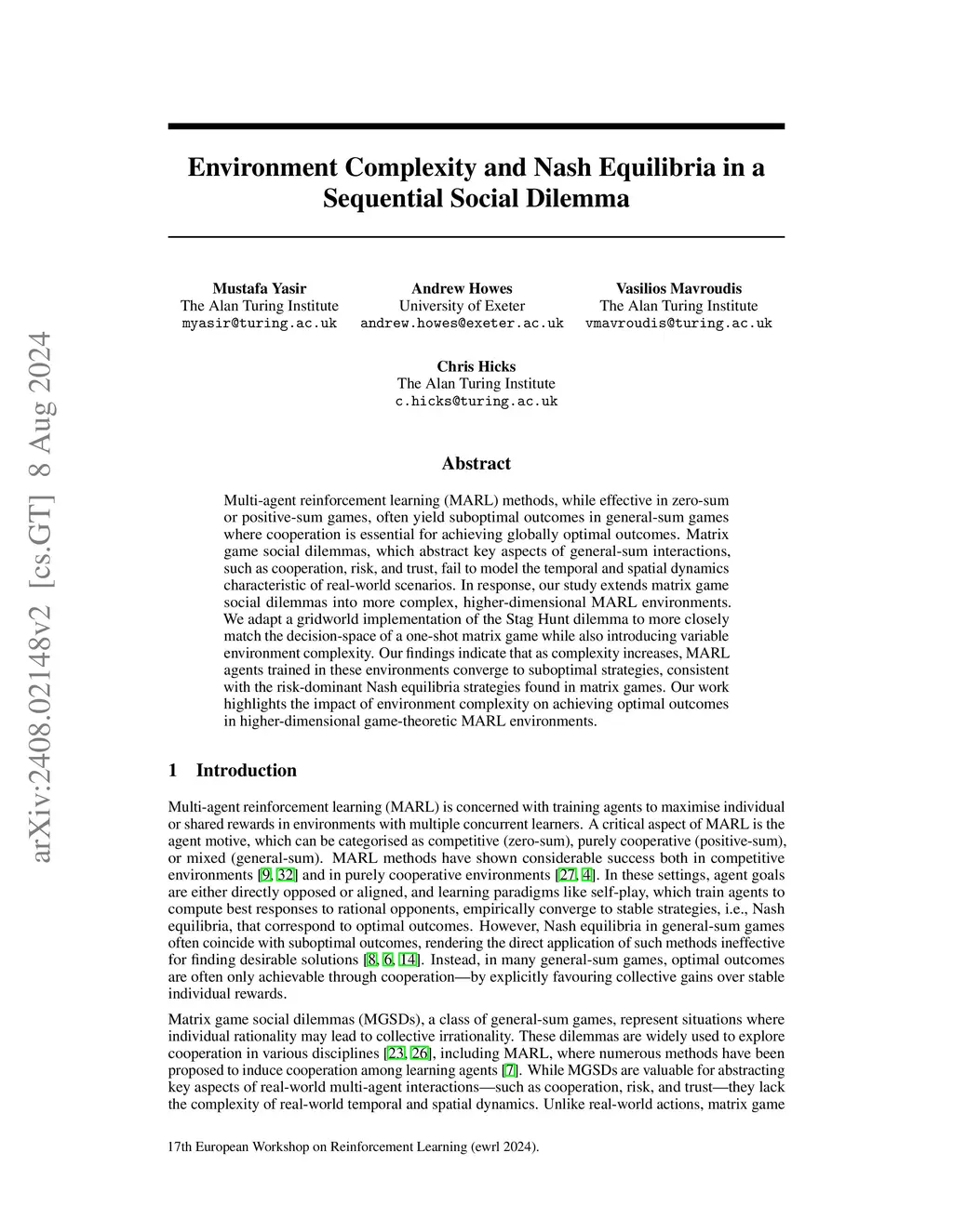 Environment Complexity and Nash Equilibria in a Sequential Social
