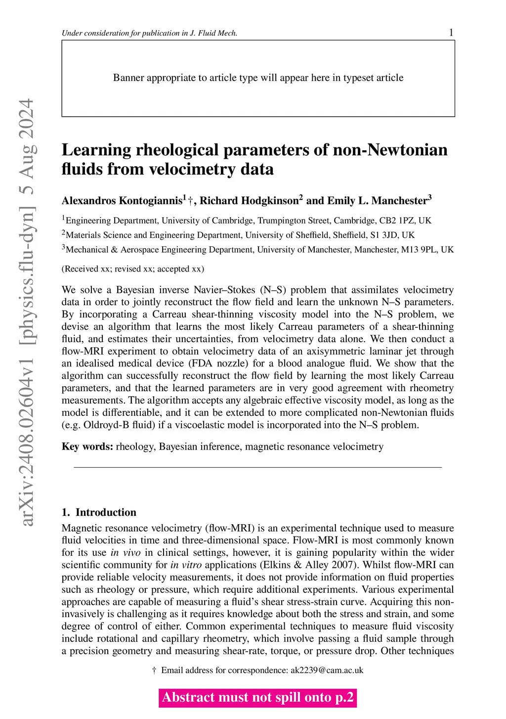 Learning rheological parameters of non-Newtonian fluids from velocimetry data
