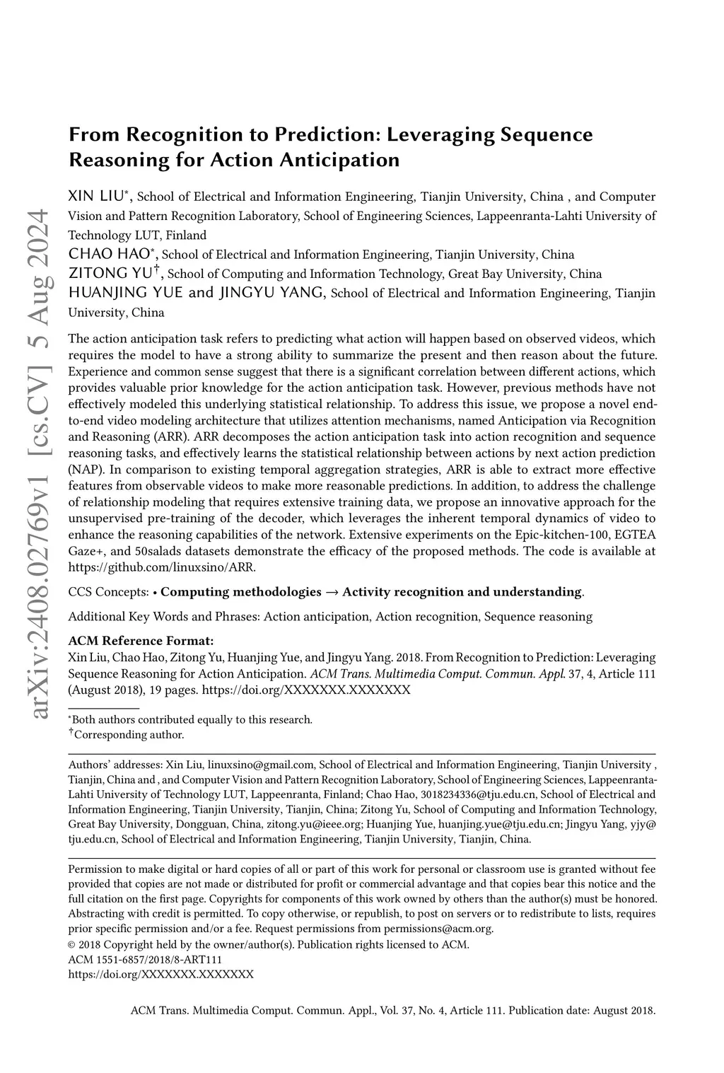 From Recognition to Prediction: Leveraging Sequence Reasoning for Action