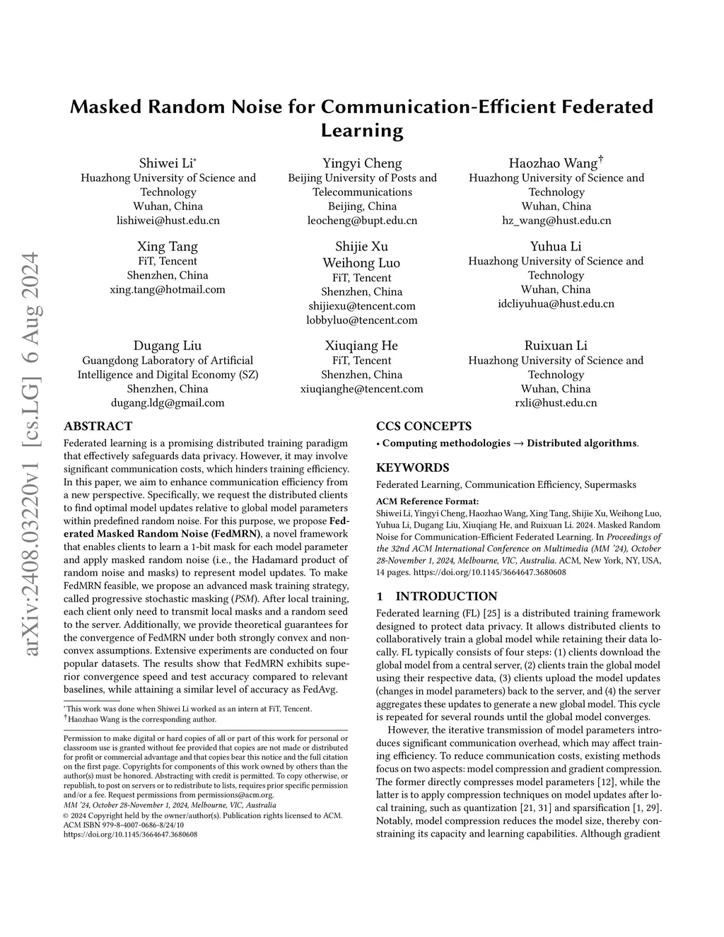 Masked Random Noise for Communication Efficient Federaetd Learning