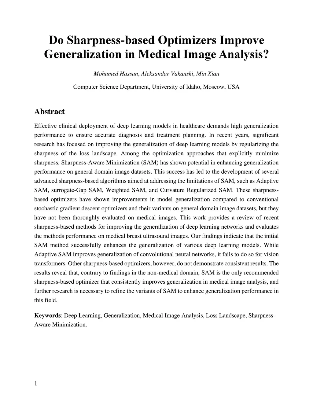 Effective clinical deployment of deep learning models in healthcare demands high generalization performance to ensure accurate diagnosis and treatment planning. In recent years, significant research has focused on improving the generalization of deep learning models by regularizing the sharpness of the loss landscape. Among the optimization approaches that explicitly minimize sharpness, Sharpness-Aware Minimization (SAM) has shown potential in enhancing generalization performance on general domain image datasets. This success has led to the development of several advanced sharpness-based algorithms aimed at addressing the limitations of SAM, such as Adaptive SAM, surrogate-Gap SAM, Weighted SAM, and Curvature Regularized SAM. These sharpness-based optimizers have shown improvements in model generalization compared to conventional stochastic gradient descent optimizers and their variants on general domain image datasets, but they have not been thoroughly evaluated on medical images. This work provides a review of recent sharpness-based methods for improving the generalization of deep learning networks and evaluates the methods performance on medical breast ultrasound images. Our findings indicate that the initial SAM method successfully enhances the generalization of various deep learning models. While Adaptive SAM improves generalization of convolutional neural networks, it fails to do so for vision transformers. Other sharpness-based optimizers, however, do not demonstrate consistent results. The results reveal that, contrary to findings in the non-medical domain, SAM is the only recommended sharpness-based optimizer that consistently improves generalization in medical image analysis, and further research is necessary to refine the variants of SAM to enhance generalization performance in this field