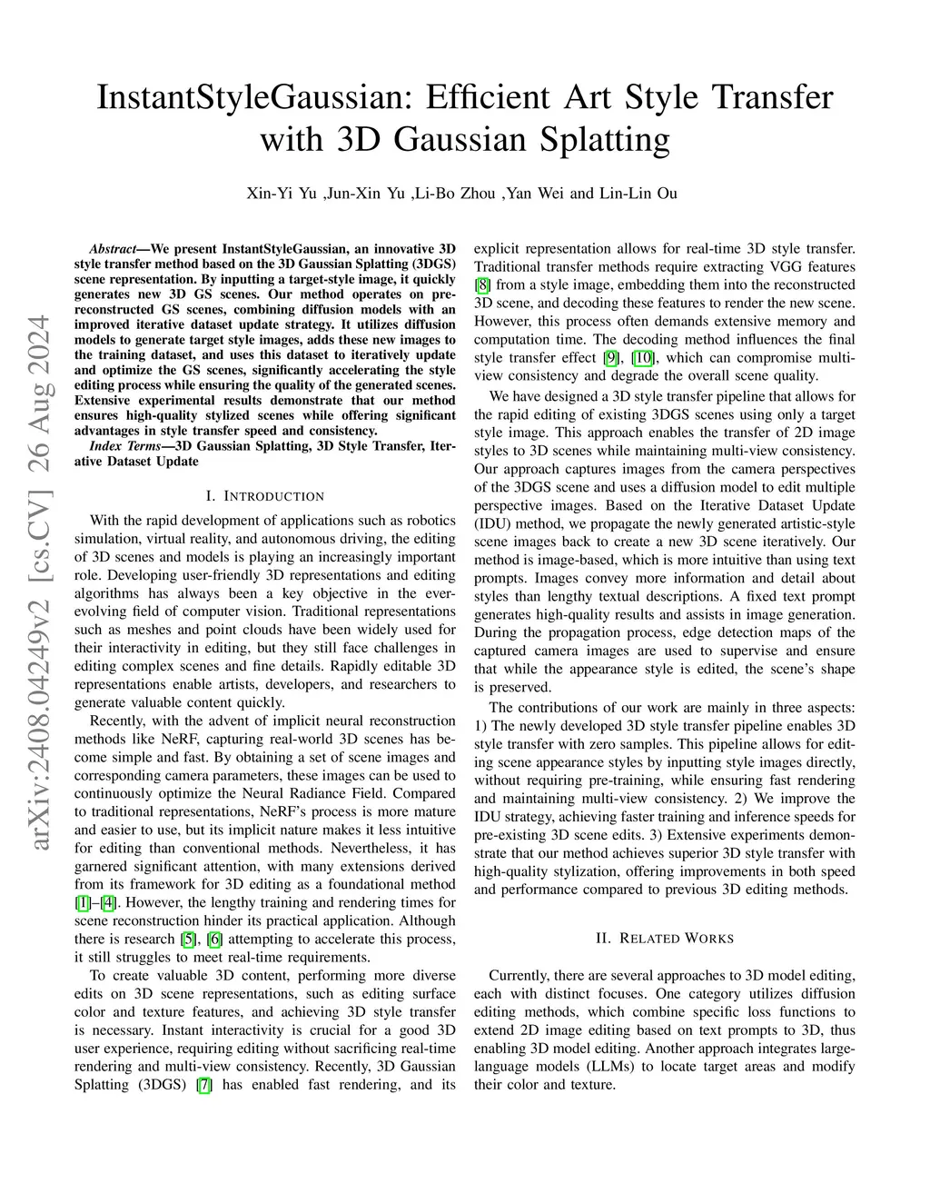 InstantStyleGaussian: Efficient Art Style Transfer with 3D Gaussian