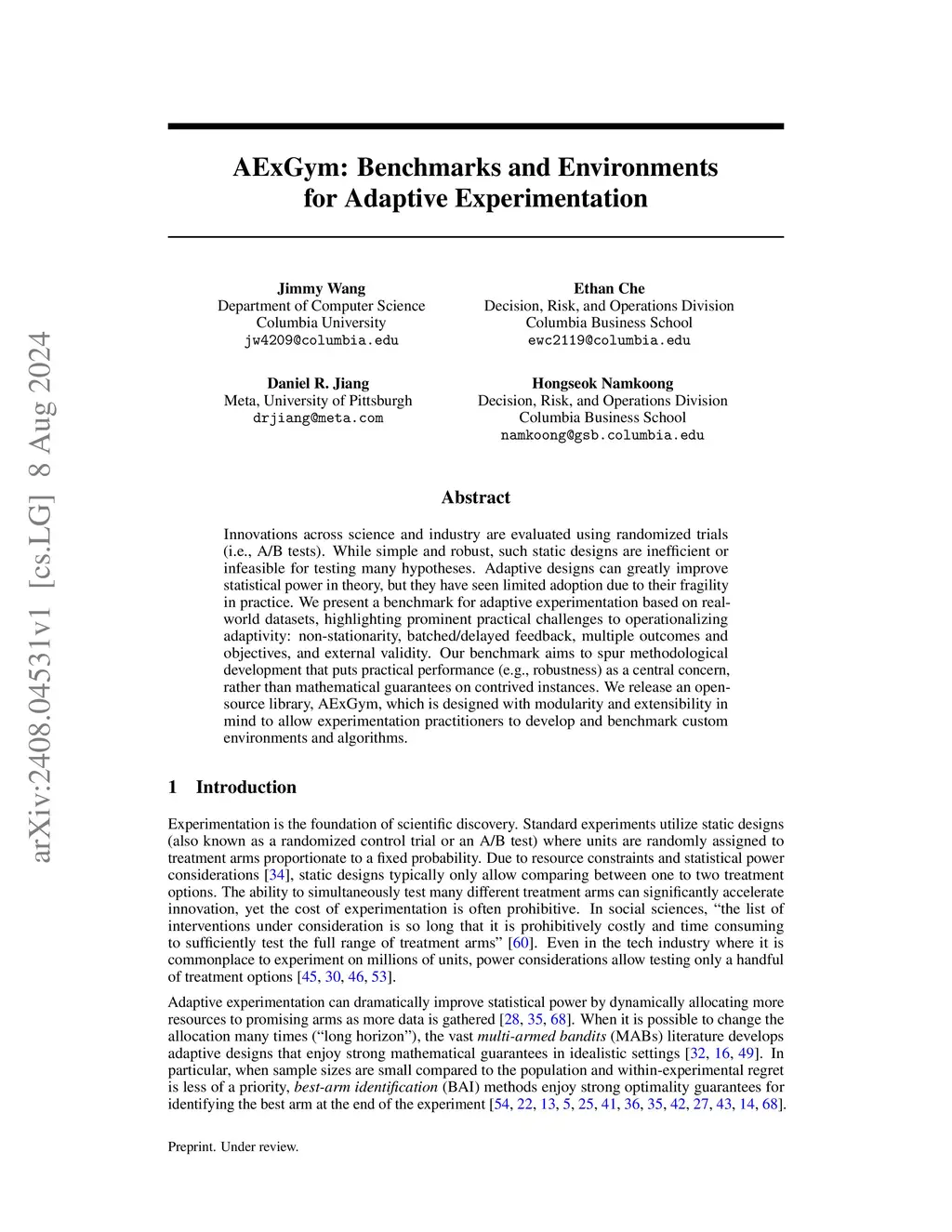 AExGym: Benchmarks and Environments for Adaptive Experimentation
