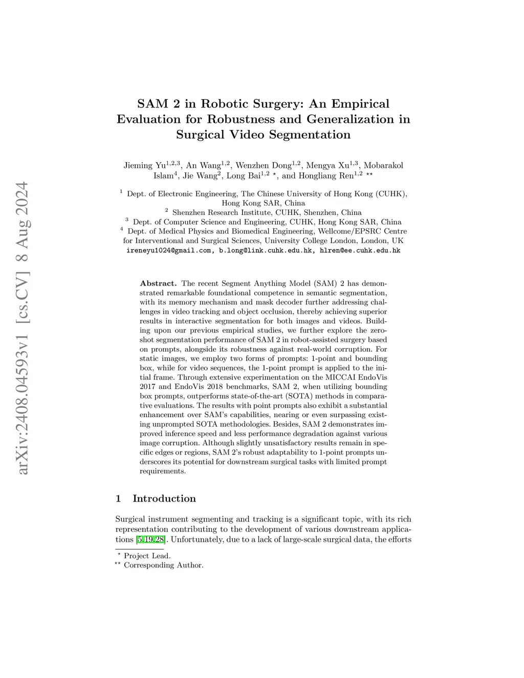 The recent Segment Anything Model (SAM) 2 has demonstrated remarkable foundational competence in semantic segmentation, with its memory mechanism and mask decoder further addressing challenges in video tracking and object occlusion, thereby achieving superior results in interactive segmentation for both images and videos. Building upon our previous empirical studies, we further explore the zero-shot segmentation performance of SAM 2 in robot-assisted surgery based on prompts, alongside its robustness against real-world corruption. For static images, we employ two forms of prompts: 1-point and bounding box, while for video sequences, the 1-point prompt is applied to the initial frame. Through extensive experimentation on the MICCAI EndoVis 2017 and EndoVis 2018 benchmarks, SAM 2, when utilizing bounding box prompts, outperforms state-of-the-art (SOTA) methods in comparative evaluations. The results with point prompts also exhibit a substantial enhancement over SAM's capabilities, nearing or even surpassing existing unprompted SOTA methodologies. Besides, SAM 2 demonstrates improved inference speed and less performance degradation against various image corruption. Although slightly unsatisfactory results remain in specific edges or regions, SAM 2's robust adaptability to 1-point prompts underscores its potential for downstream surgical tasks with limited prompt requirements.