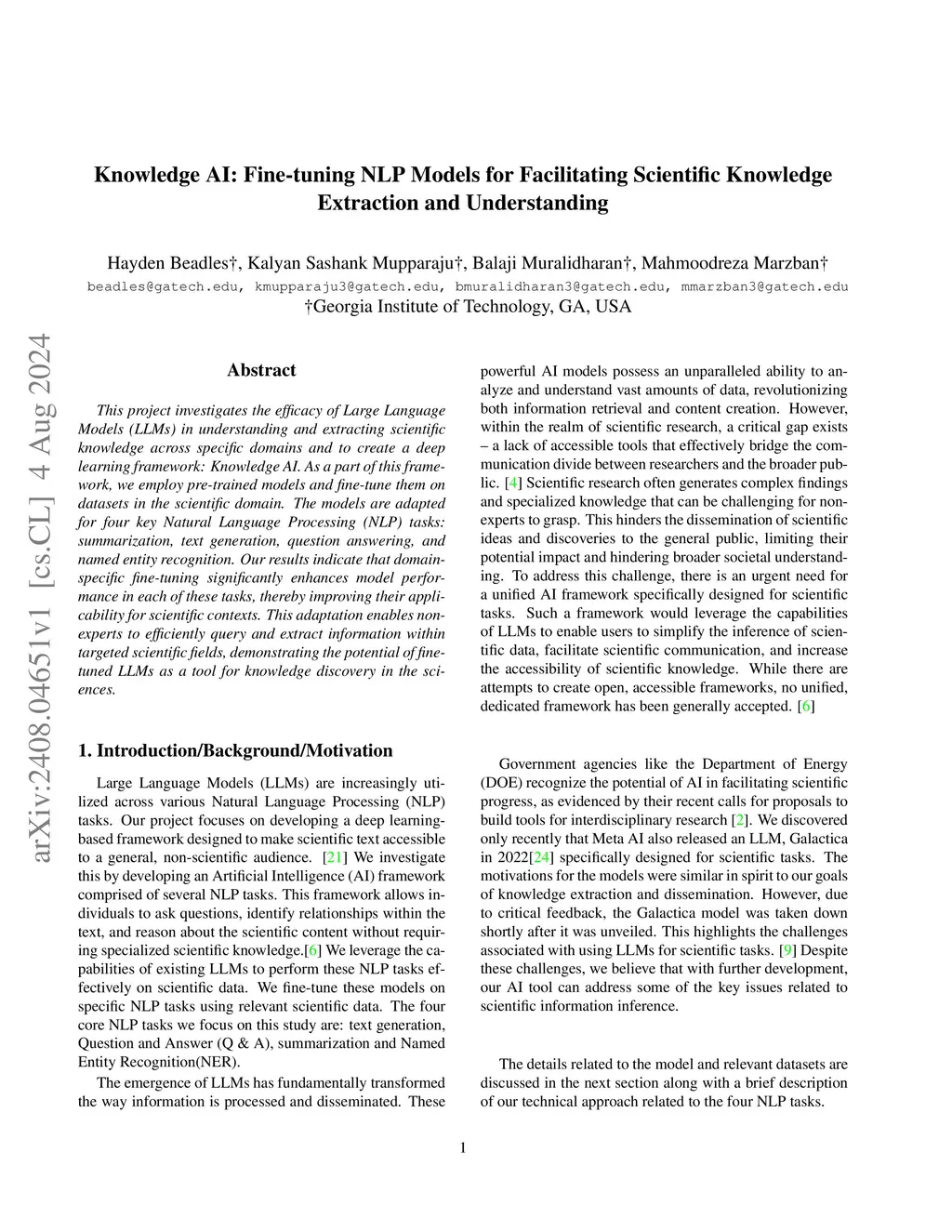 Knowledge AI: Fine-tuning NLP Models for Facilitating Scientific