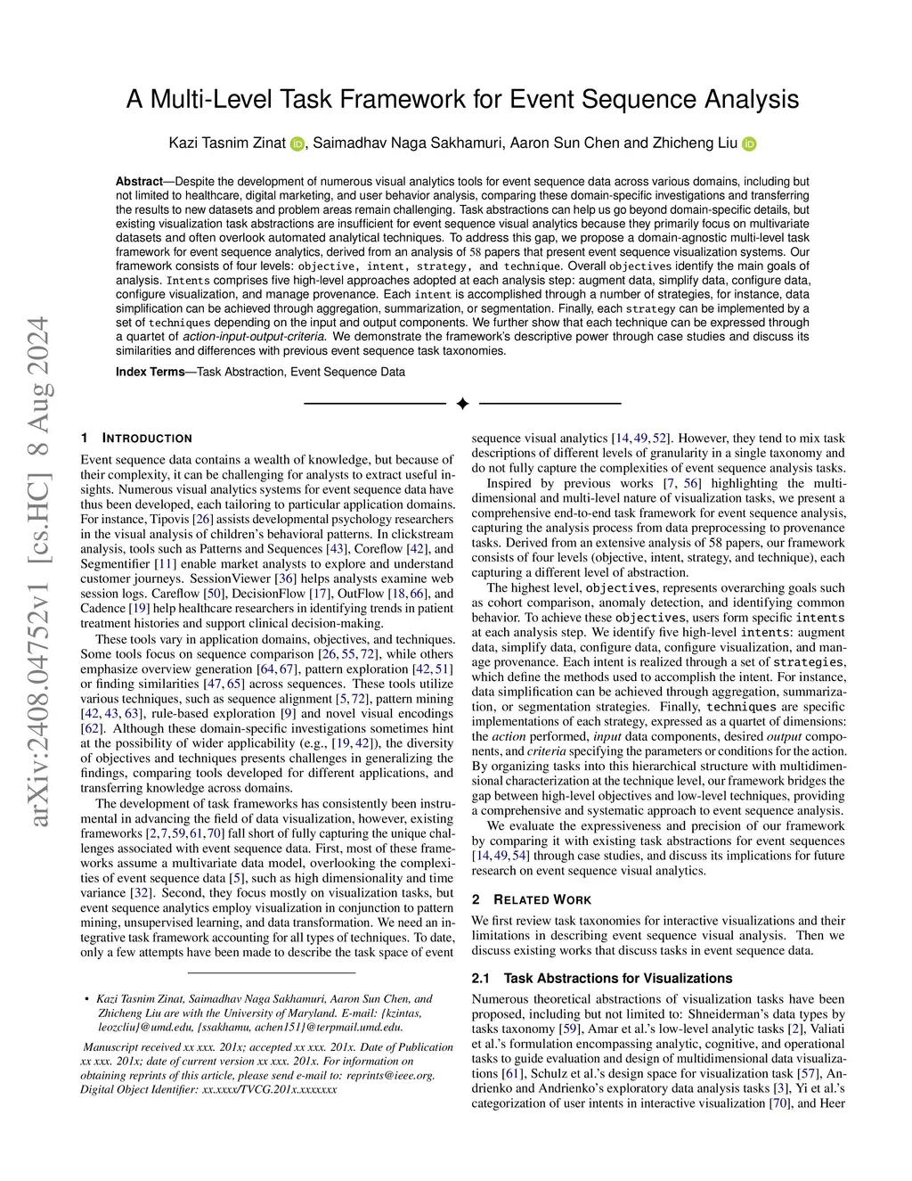 A Multi-Level Task Framework for Event Sequence Analysis