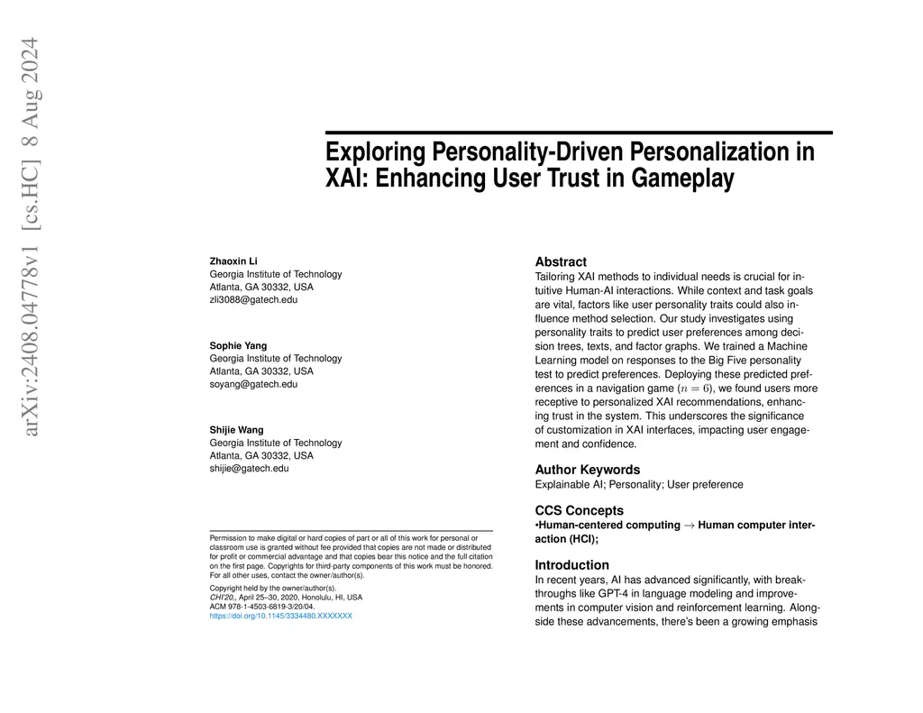 Tailoring XAI methods to individual needs is crucial for intuitive Human-AI interactions. While context and task goals are vital, factors like user personality traits could also influence method selection. Our study investigates using personality traits to predict user preferences among decision trees, texts, and factor graphs. We trained a Machine Learning model on responses to the Big Five personality test to predict preferences. Deploying these predicted preferences in a navigation game (n=6), we found users more receptive to personalized XAI recommendations, enhancing trust in the system. This underscores the significance of customization in XAI interfaces, impacting user engagement and confidence.