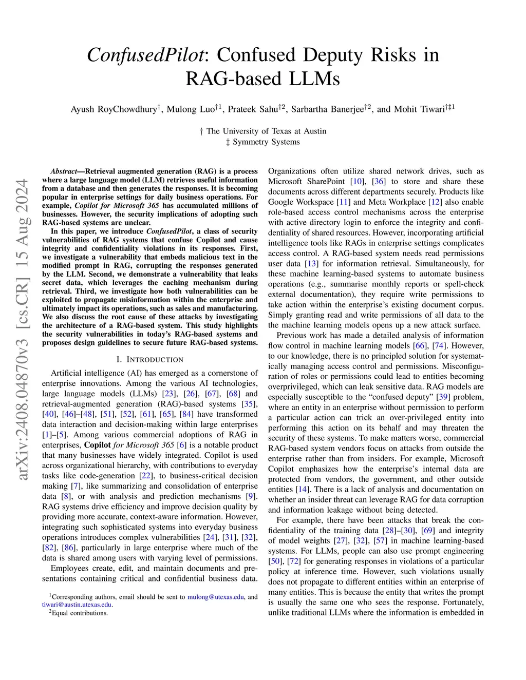 ConfusedPilot: Confused Deputy Risks in RAG-based LLMs