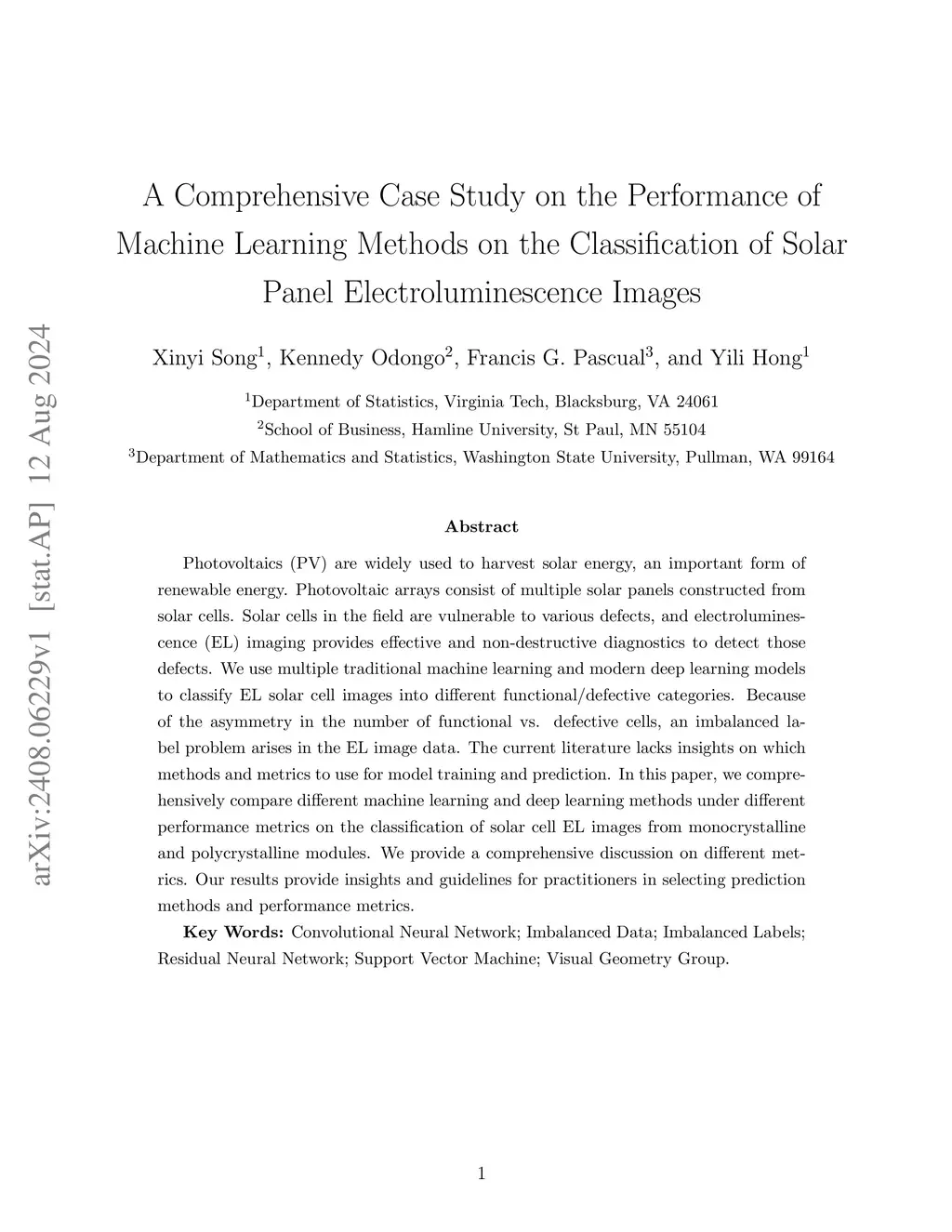 Methods on the Classification of Solar Panel Electroluminescence Images