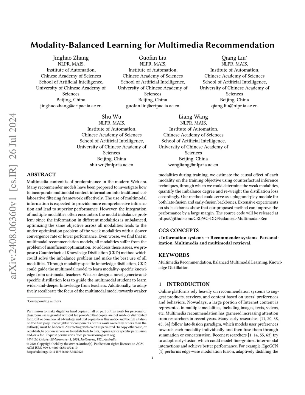 Modality-Balanced Learning for Multimedia Recommendation