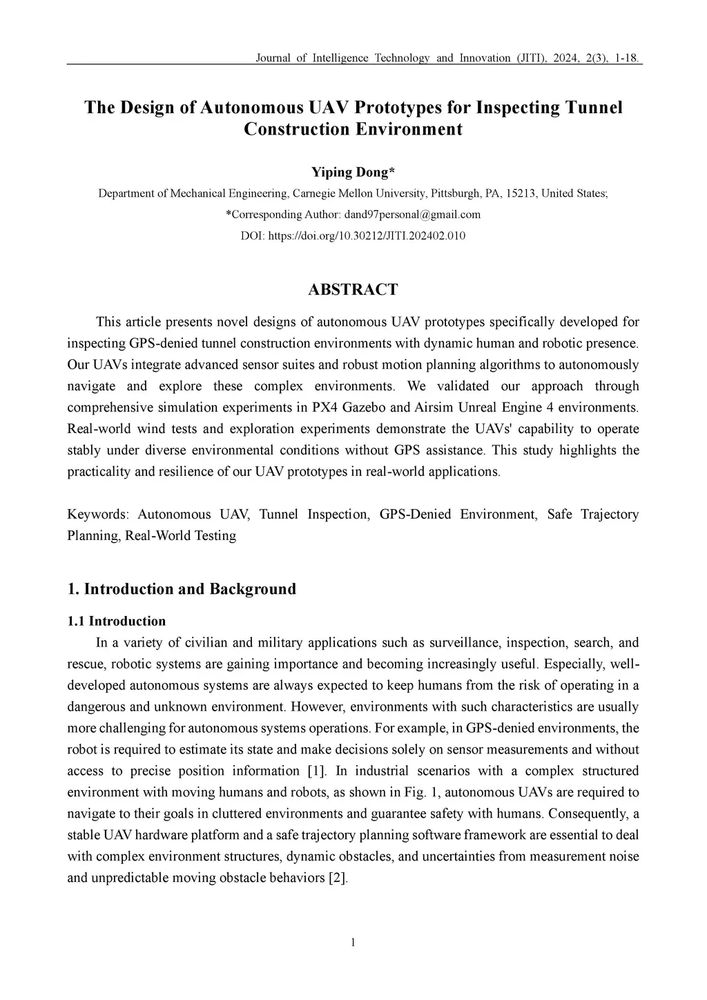 This article presents novel designs of autonomous UAV prototypes specifically developed for inspecting GPS-denied tunnel construction environments with dynamic human and robotic presence. Our UAVs integrate advanced sensor suites and robust motion planning algorithms to autonomously navigate and explore these complex environments. We validated our approach through comprehensive simulation experiments in PX4 Gazebo and Airsim Unreal Engine 4 environments. Real-world wind tests and exploration experiments demonstrate the UAVs' capability to operate stably under diverse environmental conditions without GPS assistance. This study highlights the practicality and resilience of our UAV prototypes in real-world applications.
