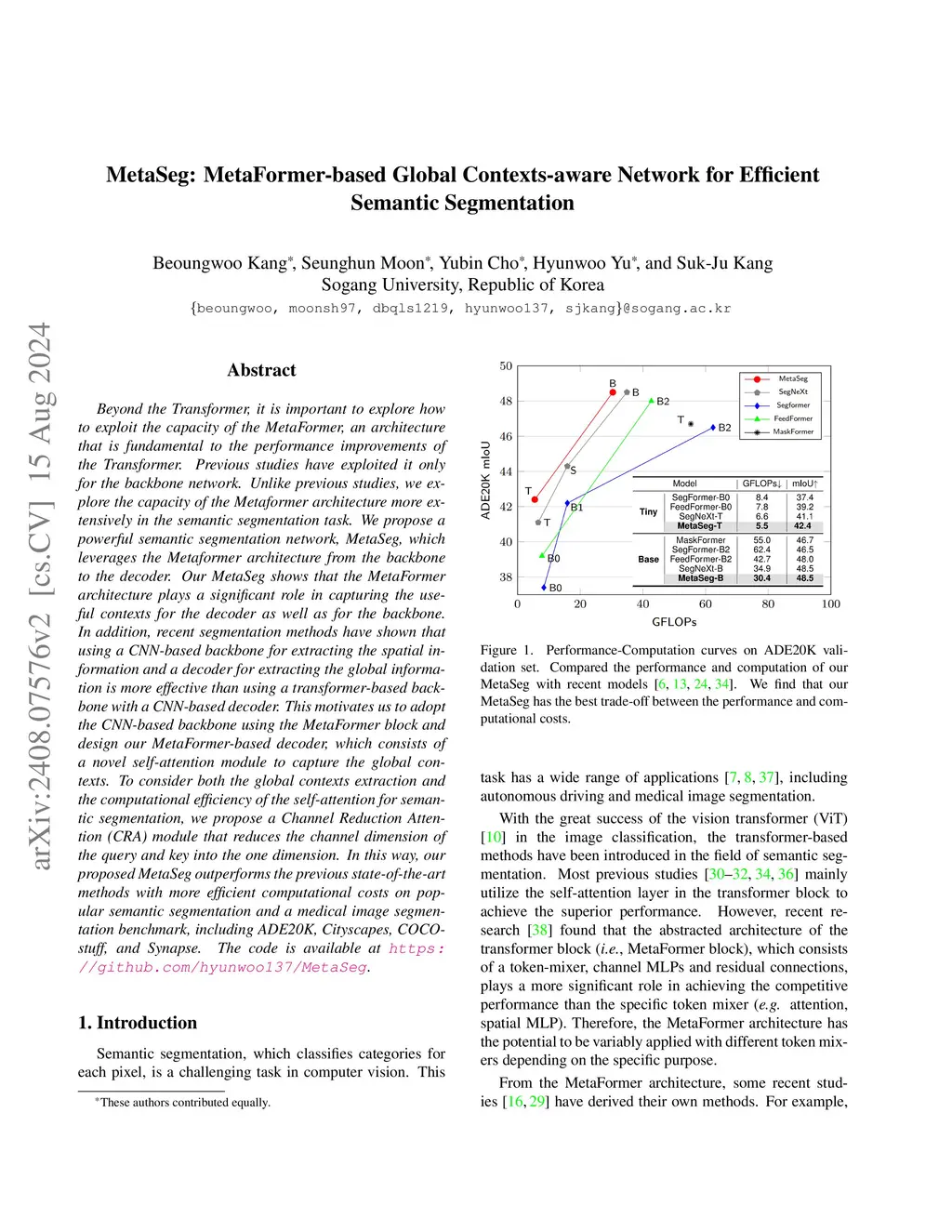 MetaSeg: MetaFormer-based Global Contexts-aware Network for Efficient