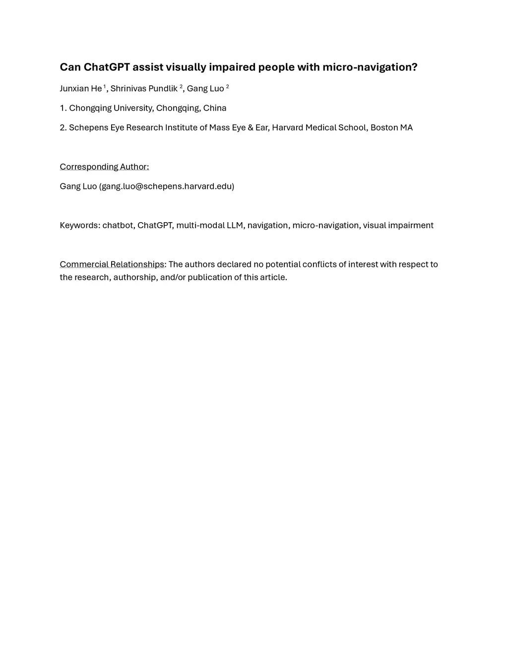 Can ChatGPT assist visually impaired people with micro-navigation?