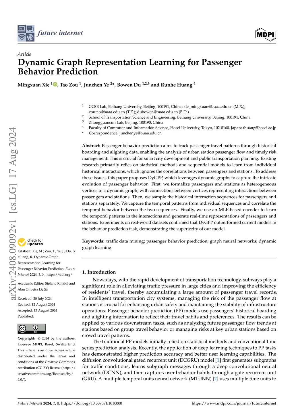 Dynamic Graph Representation Learning for Passenger Behavior Prediction