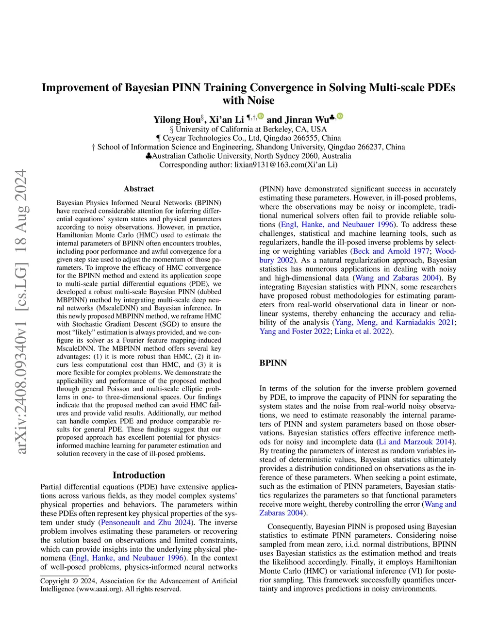 Enhanced BPINN Training Convergence in Solving General and Multi-scale Elliptic PDEs with Noise