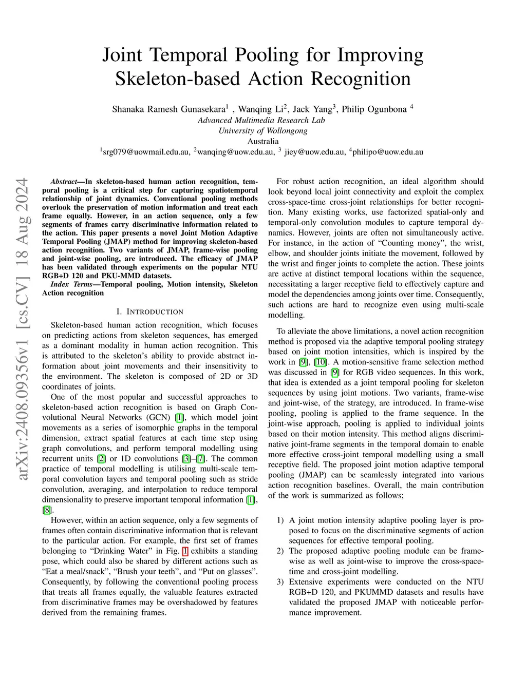 Joint Temporal Pooling for Improving Skeleton-based Action Recognition