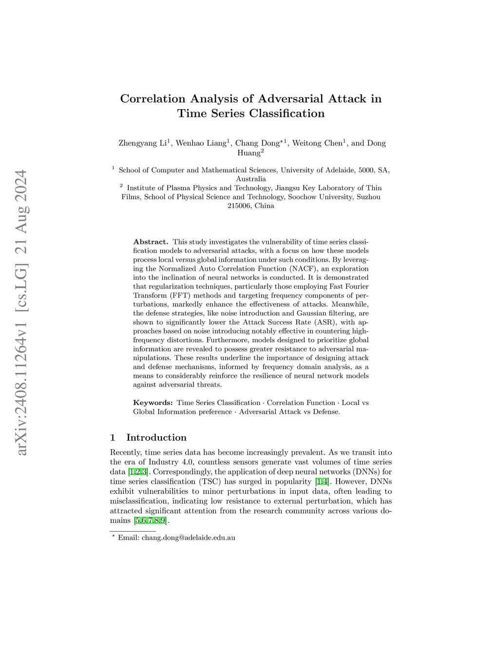 This study investigates the vulnerability of time series classification models to adversarial attacks, with a focus on how these models process local versus global information under such conditions. By leveraging the Normalized Auto Correlation Function (NACF), an exploration into the inclination of neural networks is conducted. It is demonstrated that regularization techniques, particularly those employing Fast Fourier Transform (FFT) methods and targeting frequency components of perturbations, markedly enhance the effectiveness of attacks. Meanwhile, the defense strategies, like noise introduction and Gaussian filtering, are shown to significantly lower the Attack Success Rate (ASR), with approaches based on noise introducing notably effective in countering high-frequency distortions. Furthermore, models designed to prioritize global information are revealed to possess greater resistance to adversarial manipulations. These results underline the importance of designing attack and defense mechanisms, informed by frequency domain analysis, as a means to considerably reinforce the resilience of neural network models against adversarial threats.