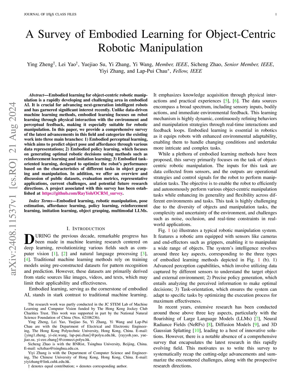 A Survey of Embodied Learning for Object-Centric Robotic Manipulation